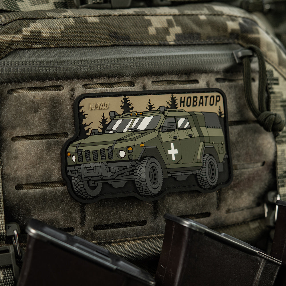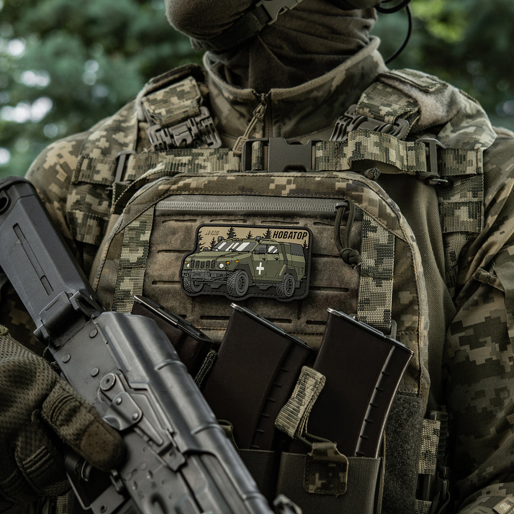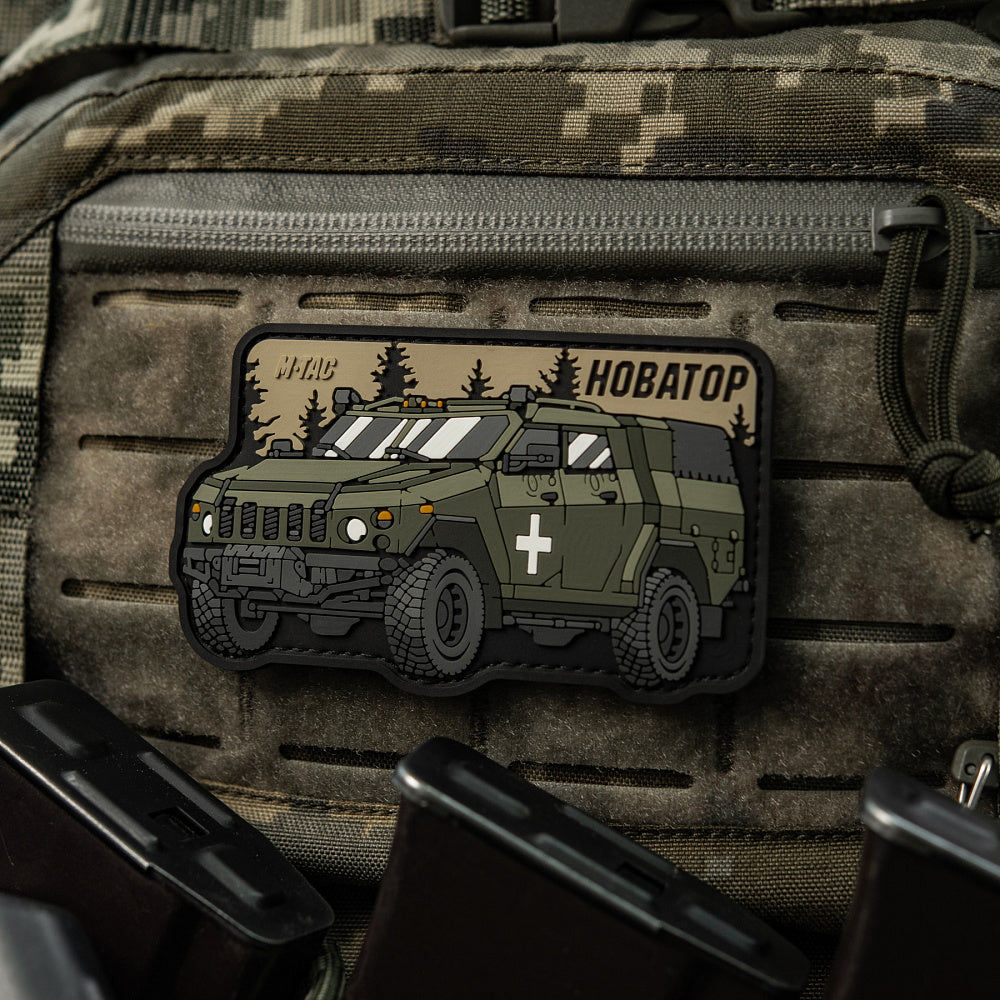 The patch is designed in the shape of the Ukrainian Novator Armored Personnel Carrier (APC), intended for patrolling, vehicle escort, communication, and fire support for personnel in combat. Thanks to its high technical characteristics, modern communication and navigation systems, and the ability to equip the armored vehicle with various types of weapons, Ukraine's Defense Forces have been successfully using the Novator APC for effective counteraction against the enemy for over 6 years.