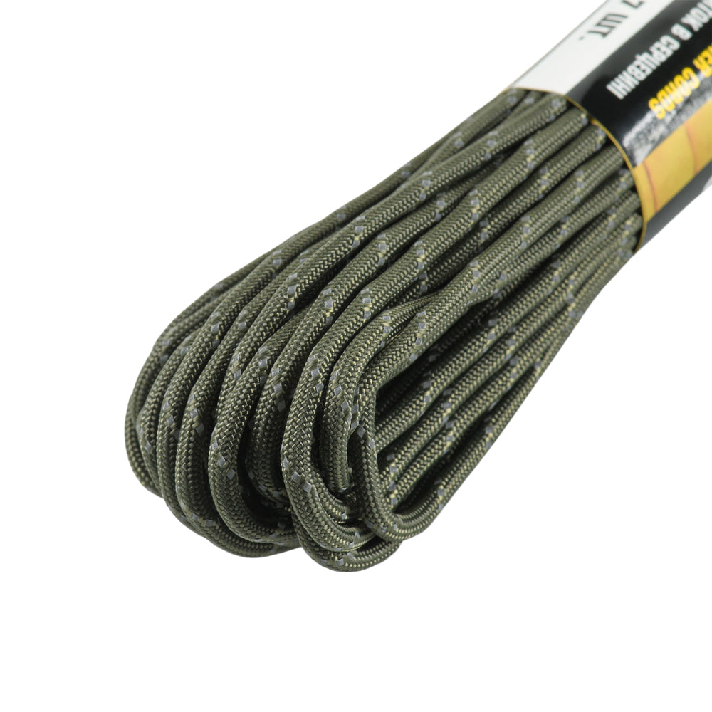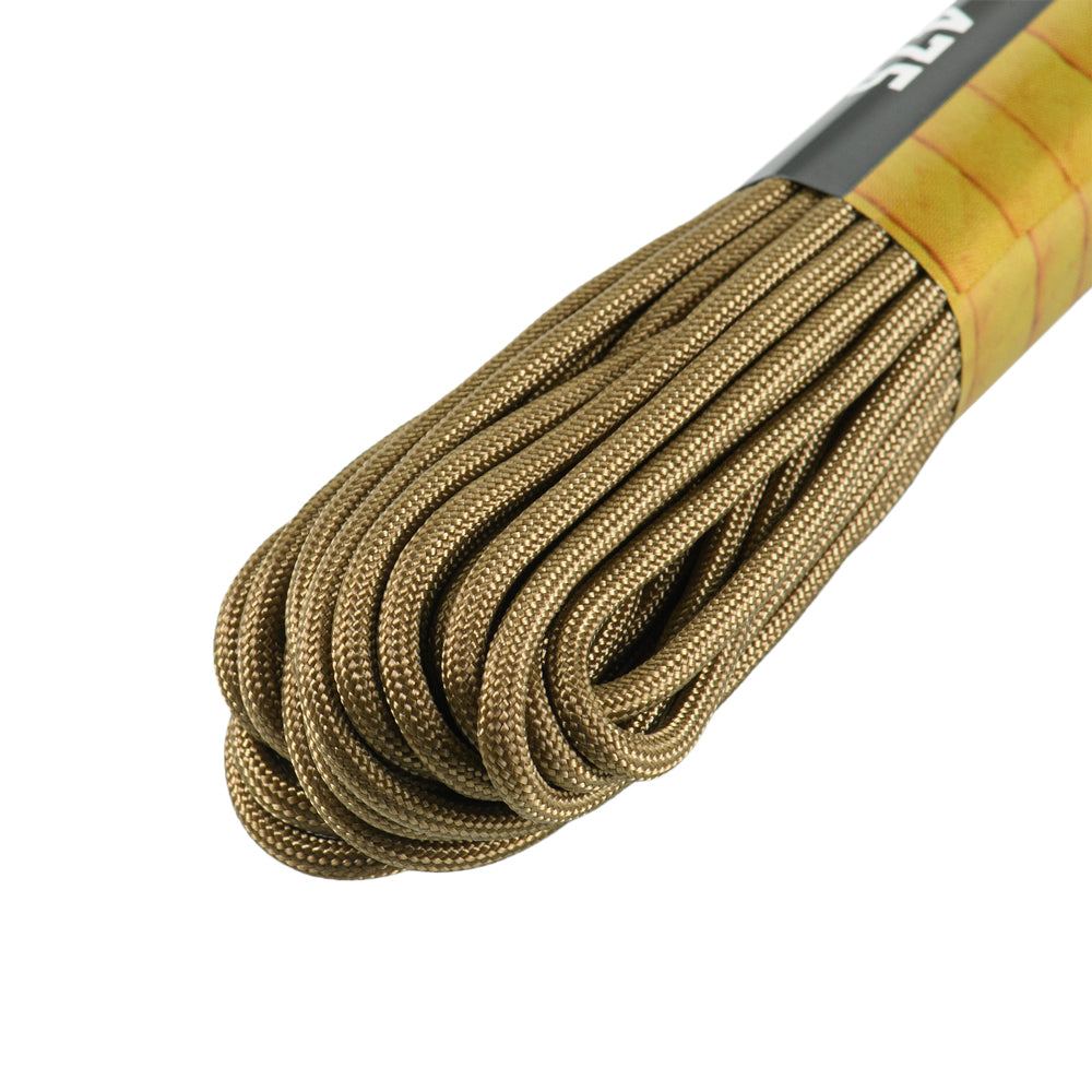 The paracord is made from 100% nylon, a lightweight yet highly durable material. It consists of an outer braided sheath and an inner core, providing high tensile strength while remaining light in weight.