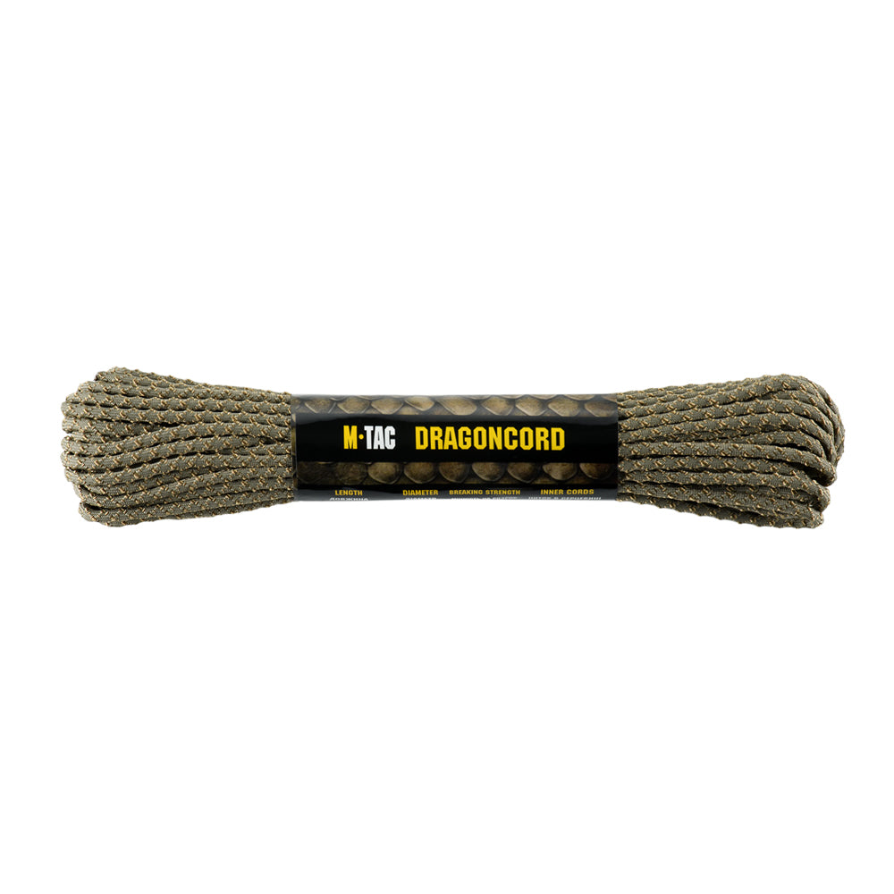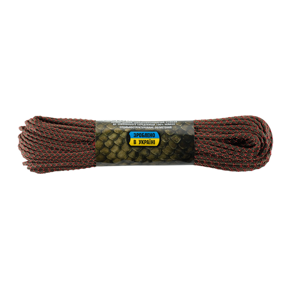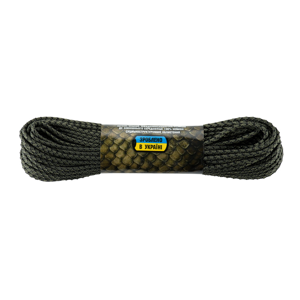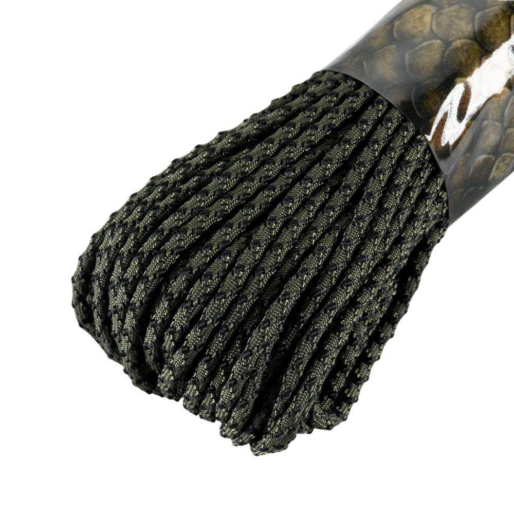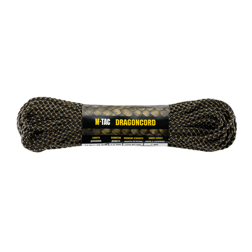 The paracord is made from 100% nylon, a lightweight yet highly durable material. It consists of an outer braided sheath and an inner core, providing high tensile strength while remaining light in weight.