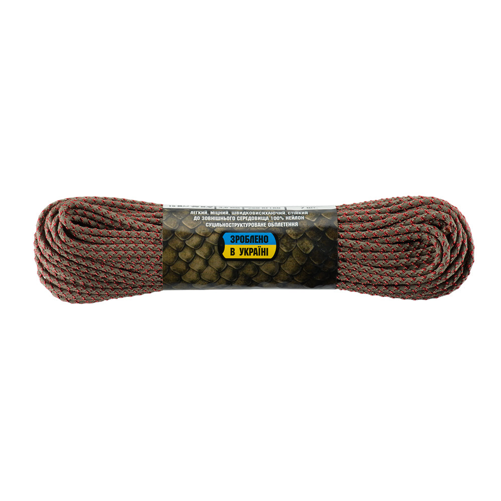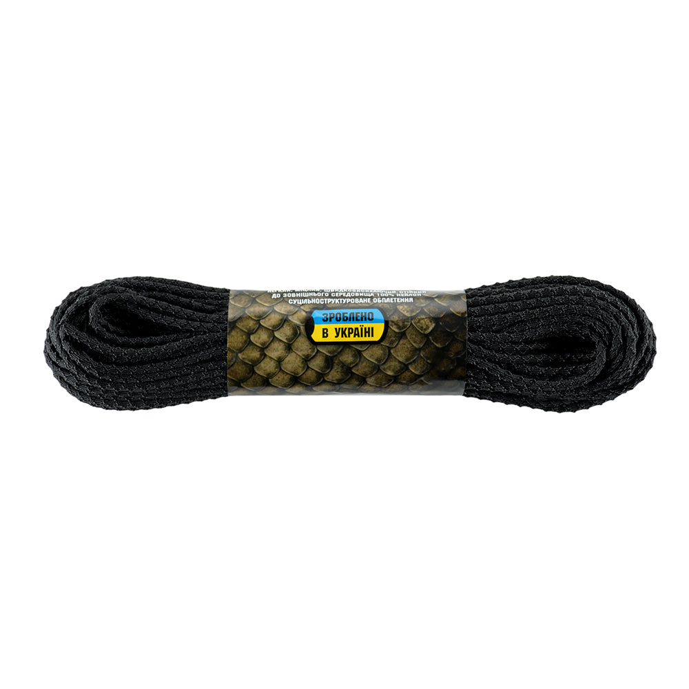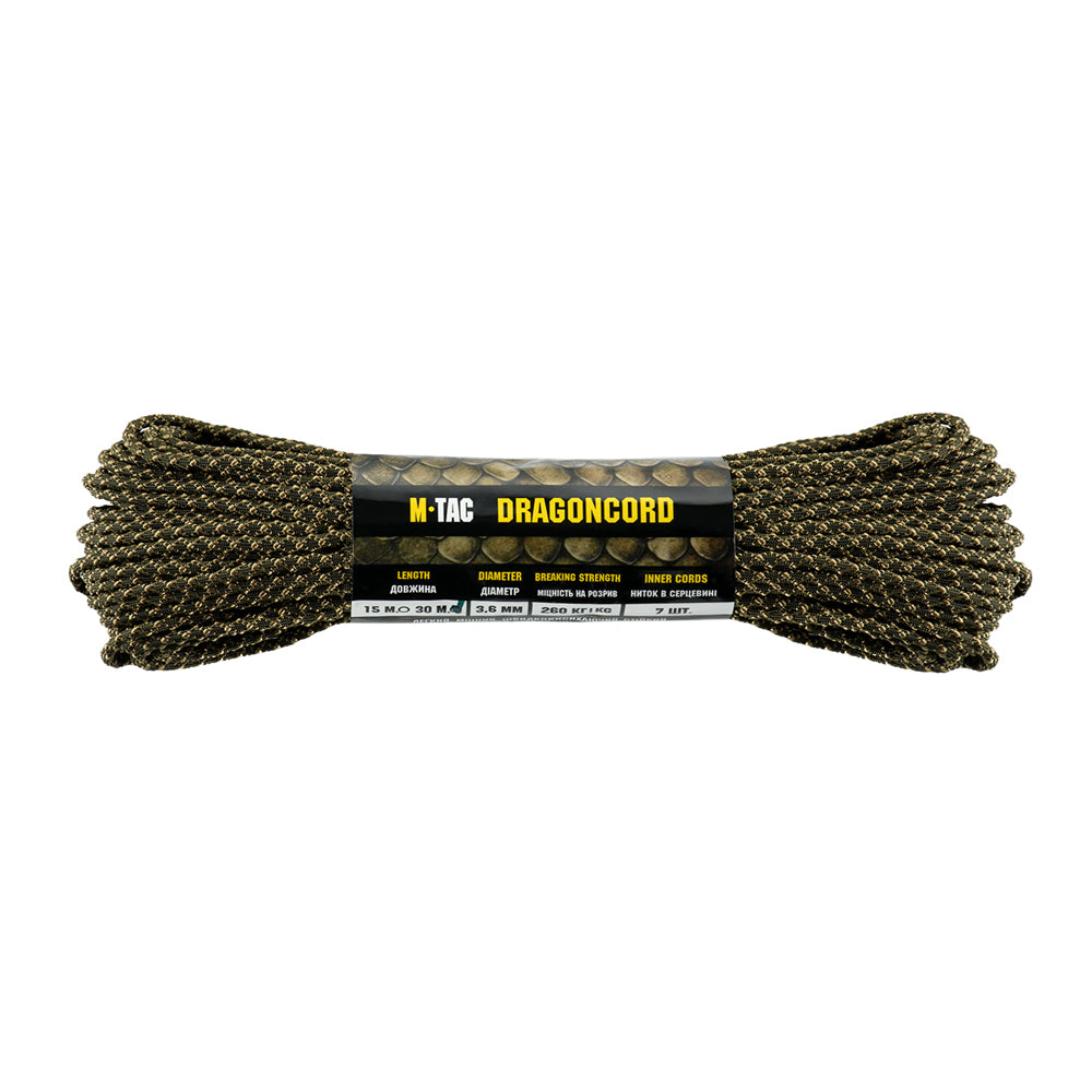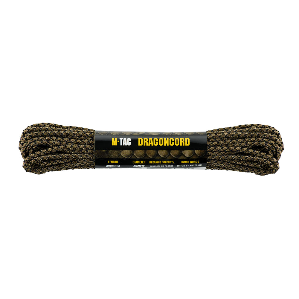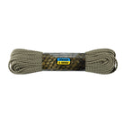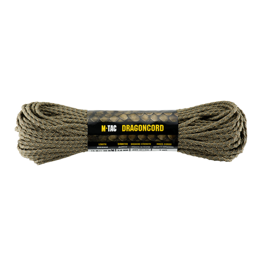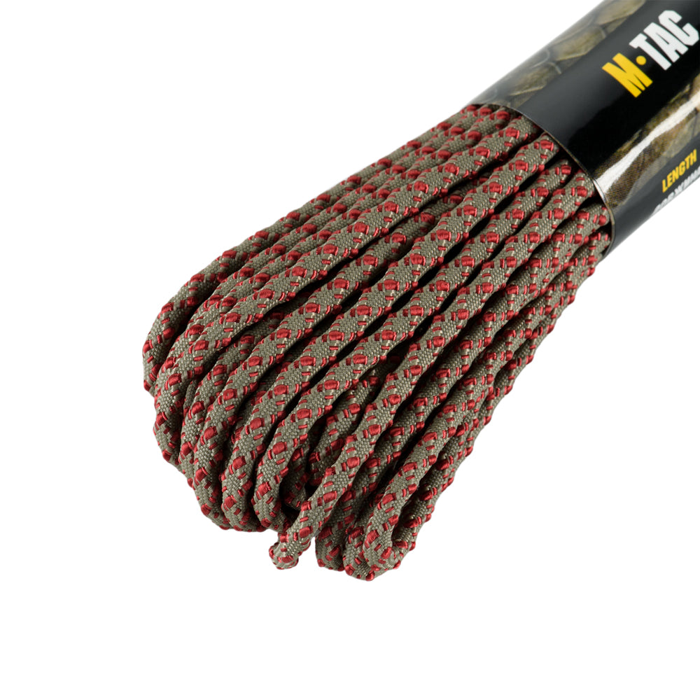 The paracord is made from 100% nylon, a lightweight yet highly durable material. It consists of an outer braided sheath and an inner core, providing high tensile strength while remaining light in weight.