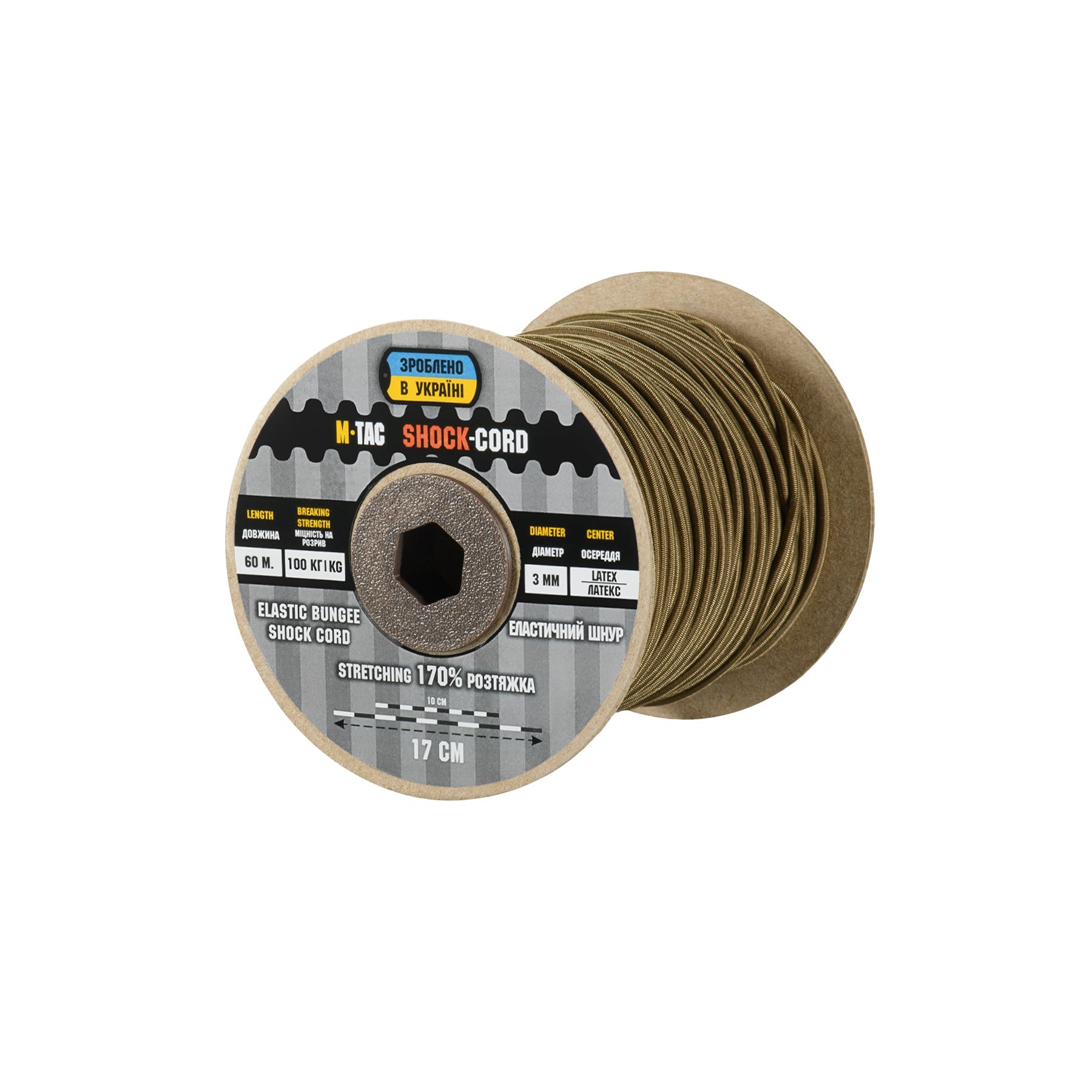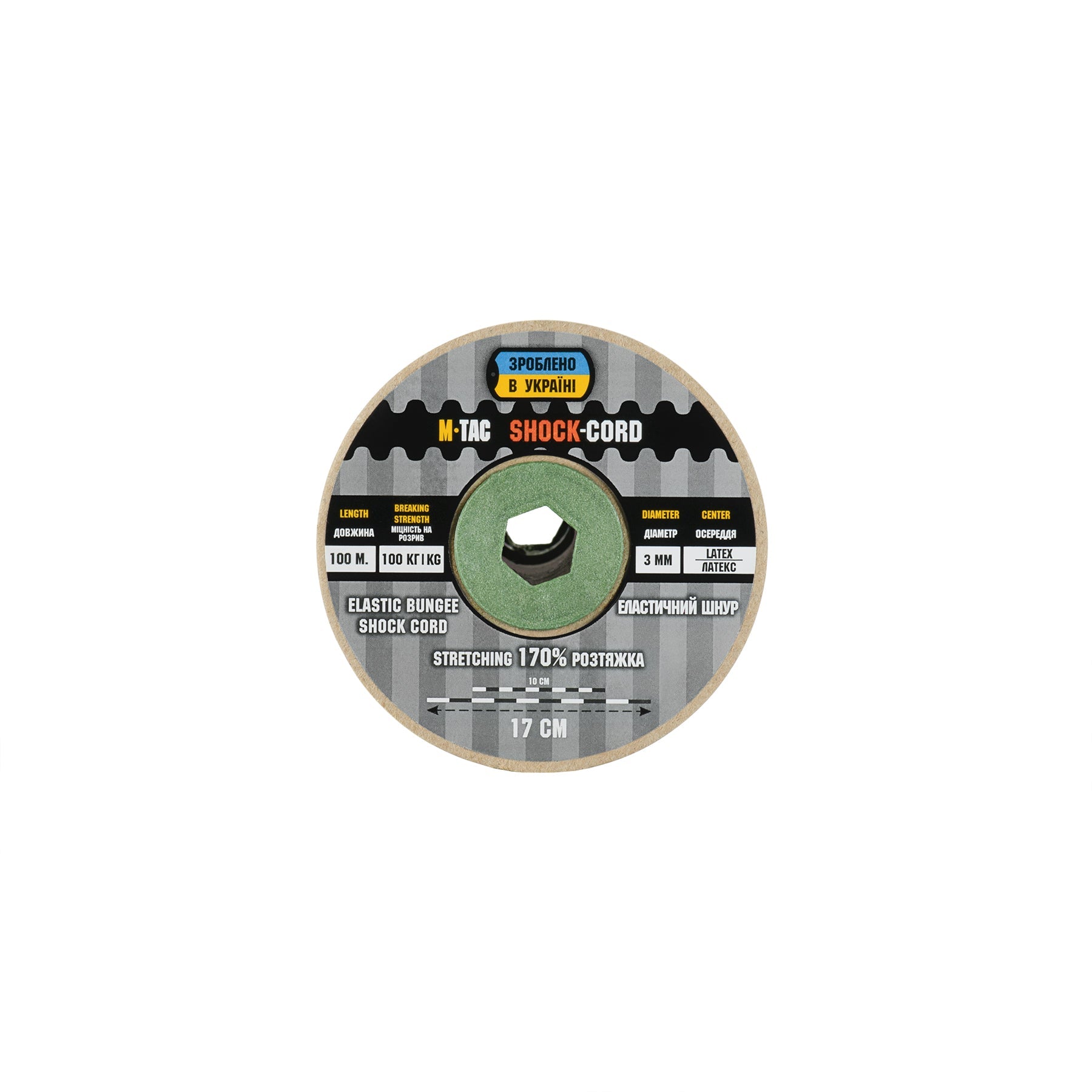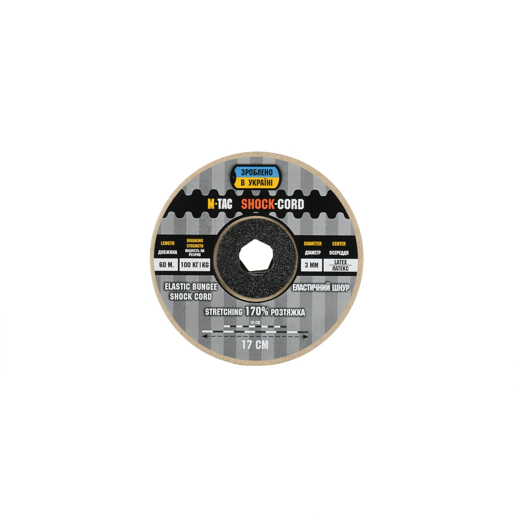 Made from durable nylon, the cord is lightweight yet highly resistant to wear. It consists of an outer sheath and a latex core, providing high tensile strength while keeping weight minimal. For convenience, the paracord is supplied on a pressed cardboard spool for easy handling and storage.