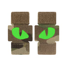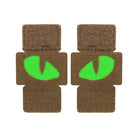 The Tiger eyes patch consists of two parts and is two rectangles measuring 1.5 x 1 inches. Made of Cordura 500D, strong, resistant to abrasion, burning and deformation material and with two cat's eyes depicted on them. The patches attach to the MOLLE interface, rather than to ordinary loop panels with hook and loop fastener. The Eye images are made using Laser Cut technology, which consists in the fact that holes are cut in the material with a laser. The rubberized material is glued between two layers of Cordura, which can accumulate a light charge and glow in the dark. Compact light-accumulative, glow-in-the-dark patches can easily find their place on a backpack, bag or even baseball cap.