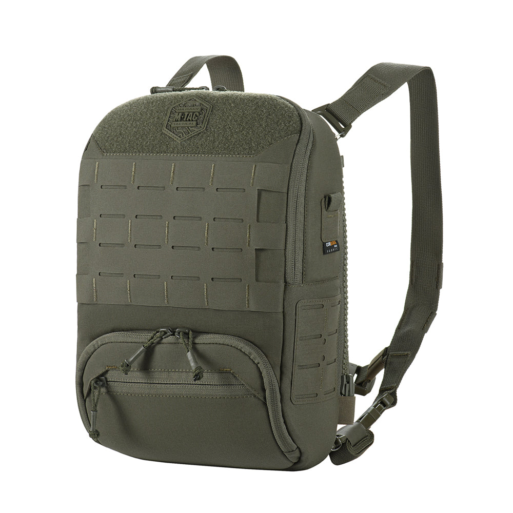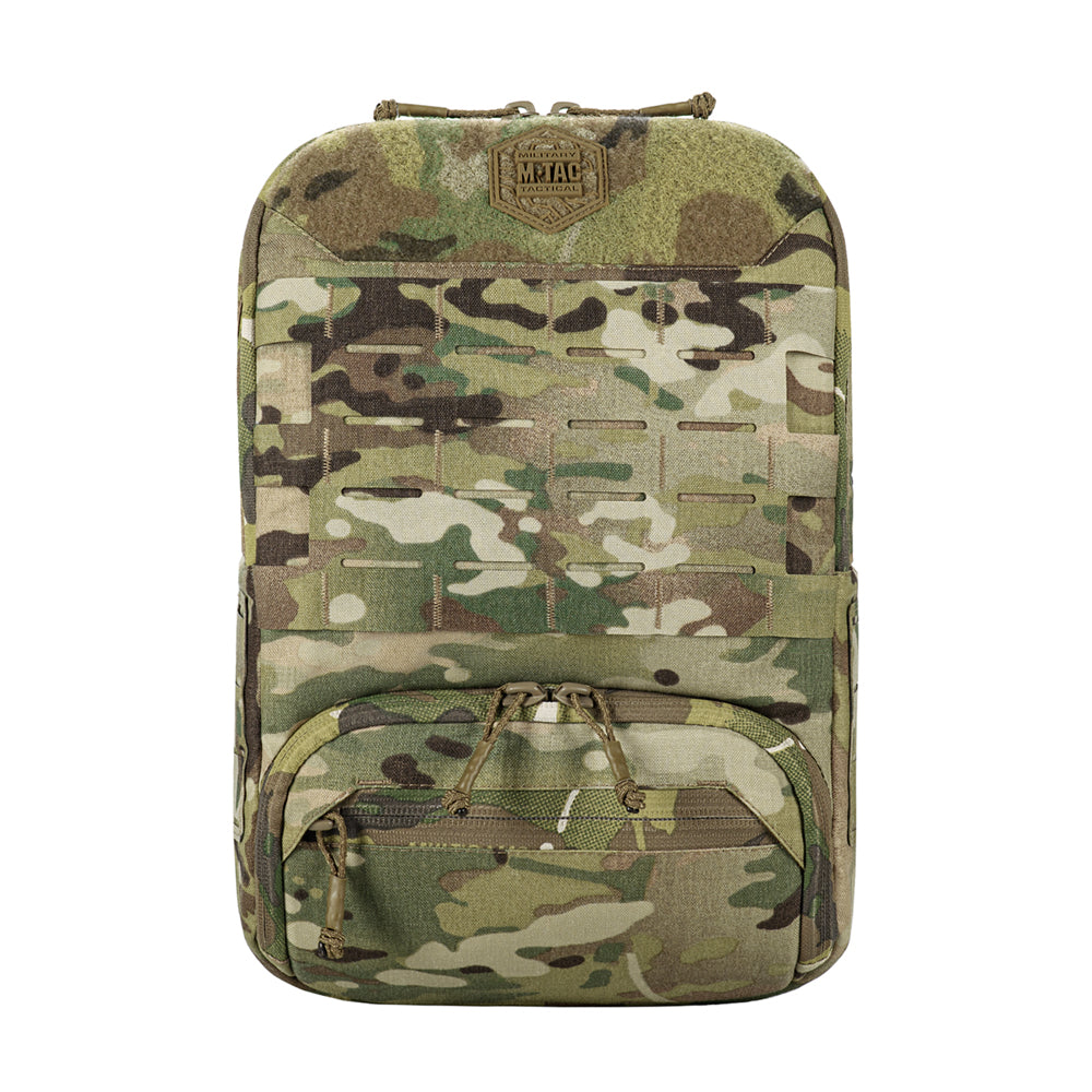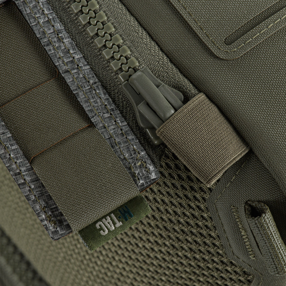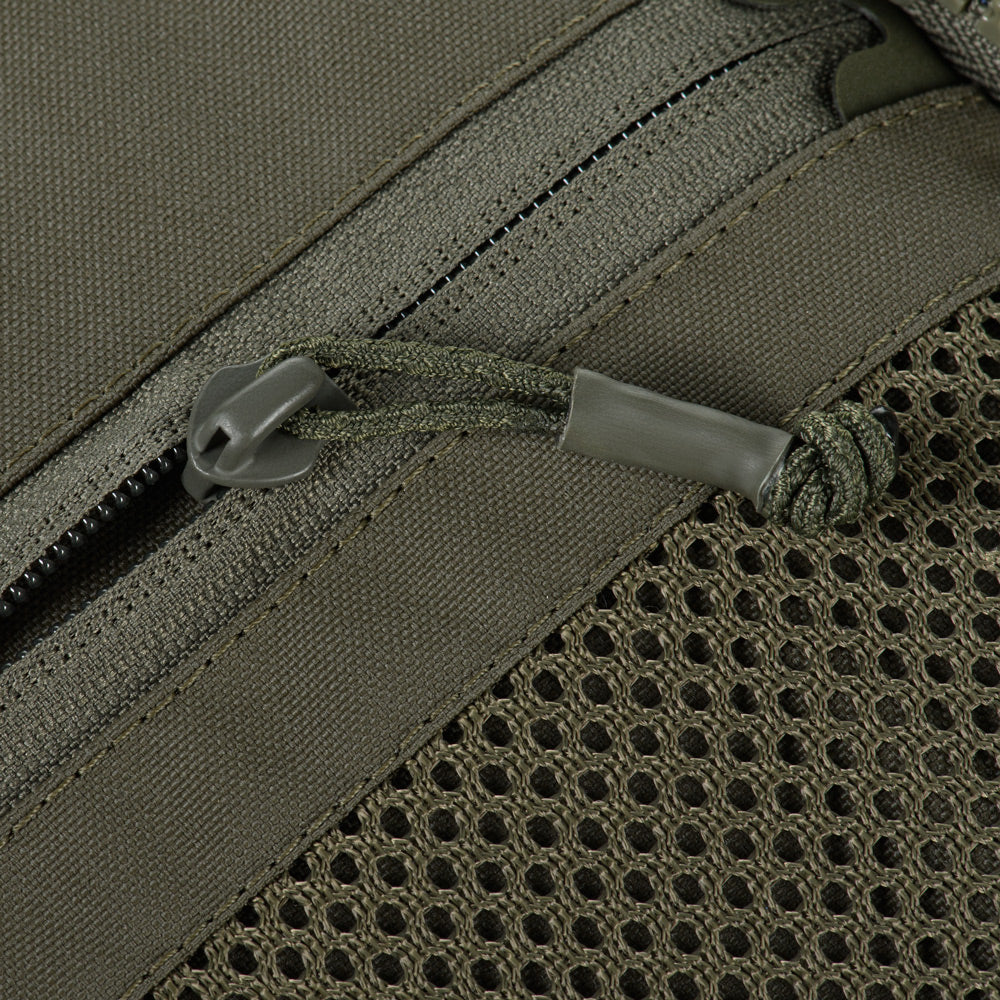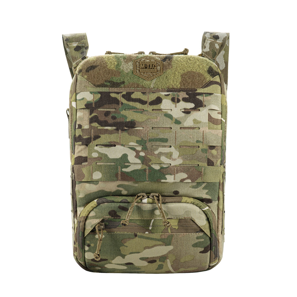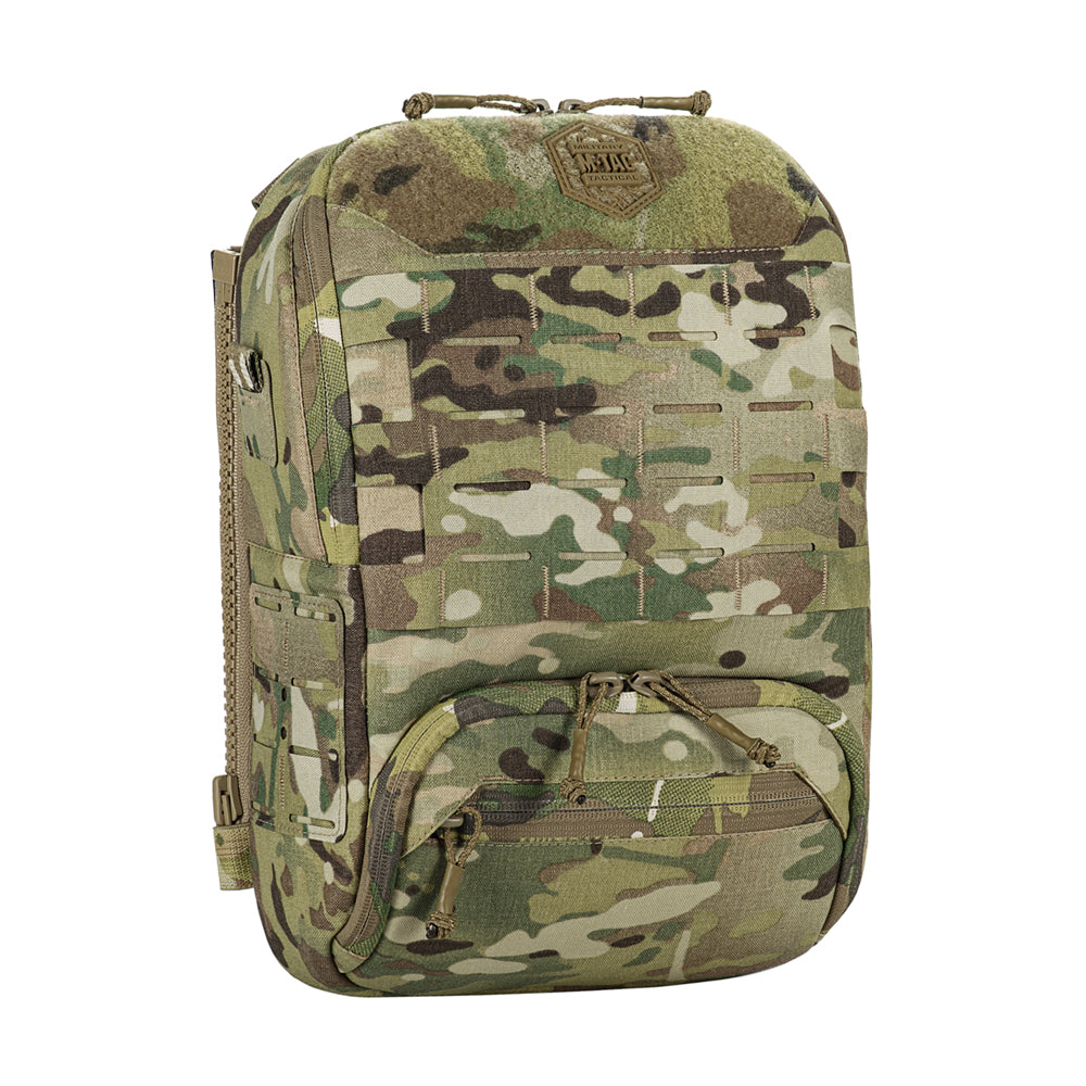 At the bottom of the bag-pack is a dedicated compartment for goggles with an elastic retention strap, as well as an additional external zippered pocket. The front and side panels are equipped with MOLLE Laser Cut panels for attaching additional gear. A large mesh pocket is located on the back panel.