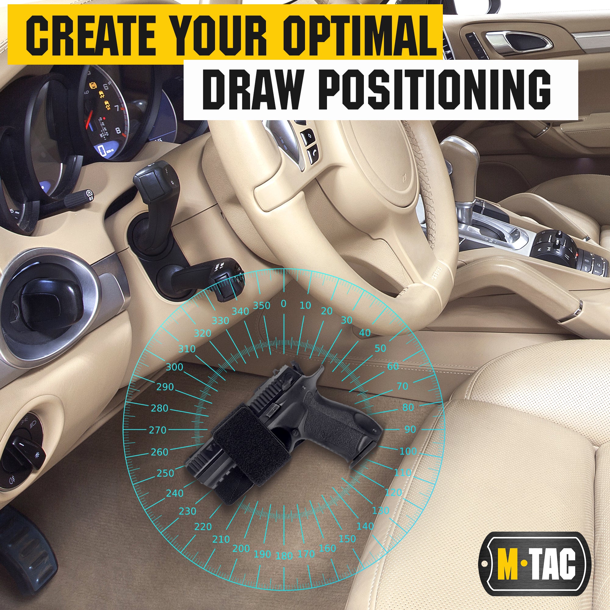 A ready-made bundle of a holster and adhesive strap to attach it to a place convenient for you, be it a table or a safe.