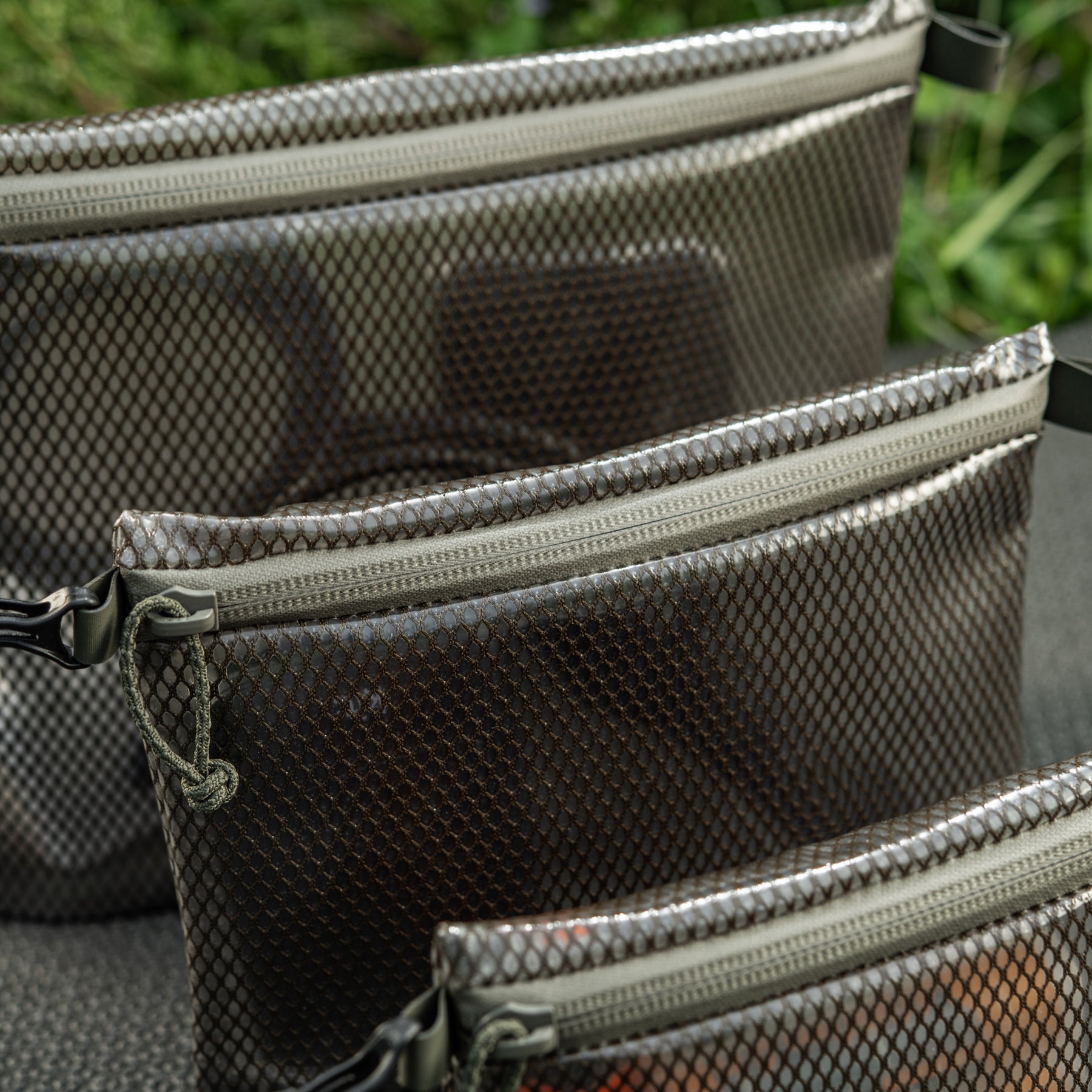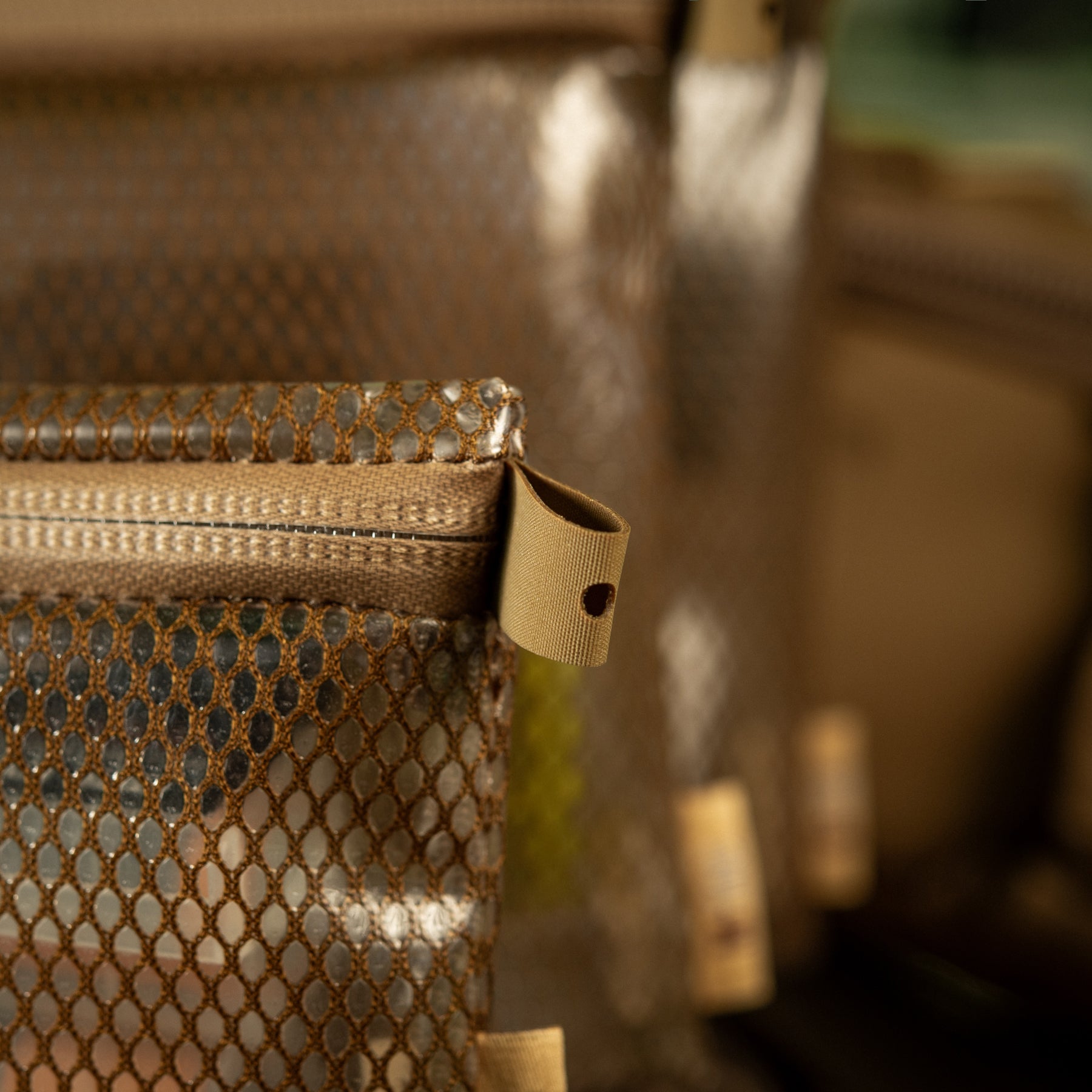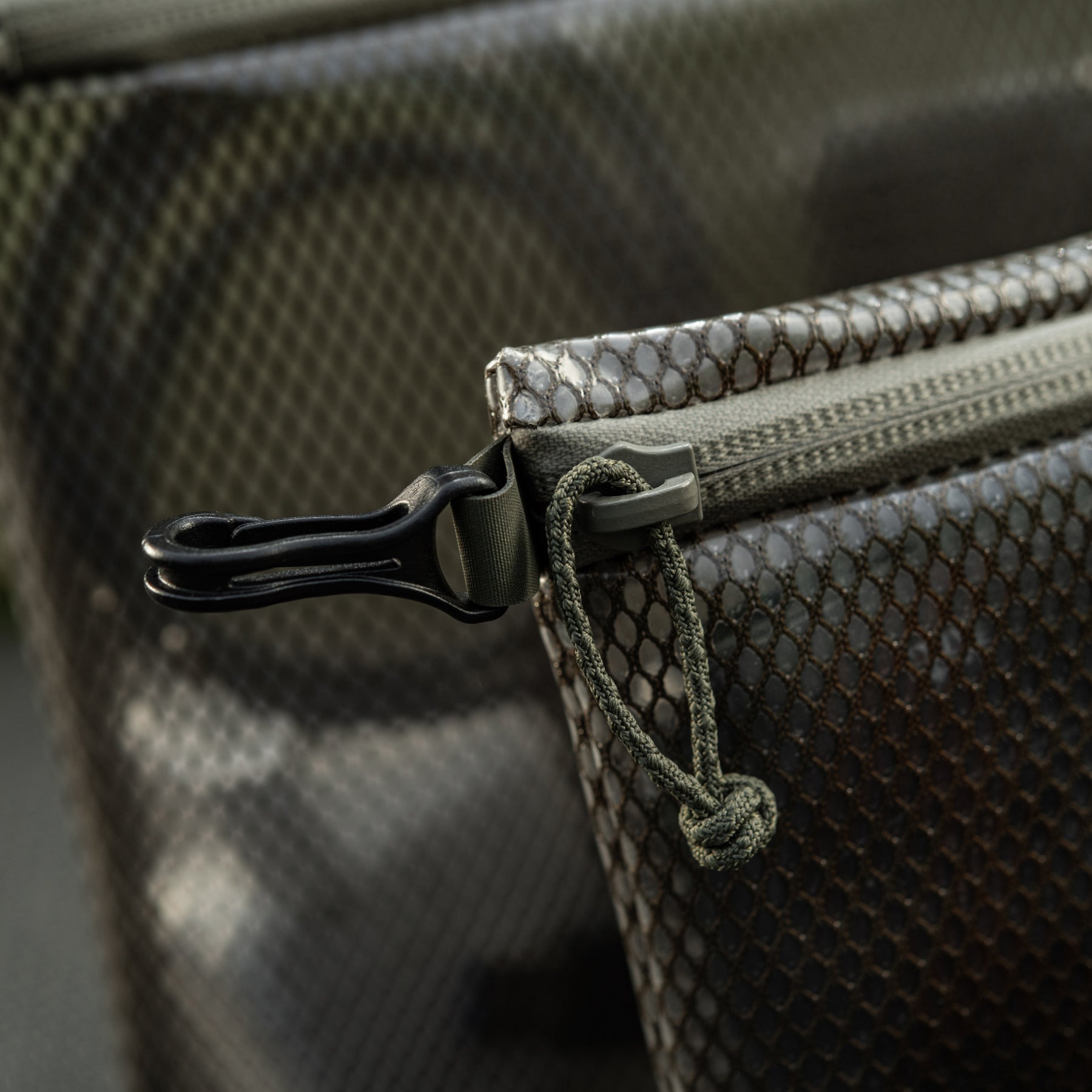 Each organizer is equipped with a YKK AquaGuard zipper that, combined with the main material, protects the contents from water and harsh weather conditions.