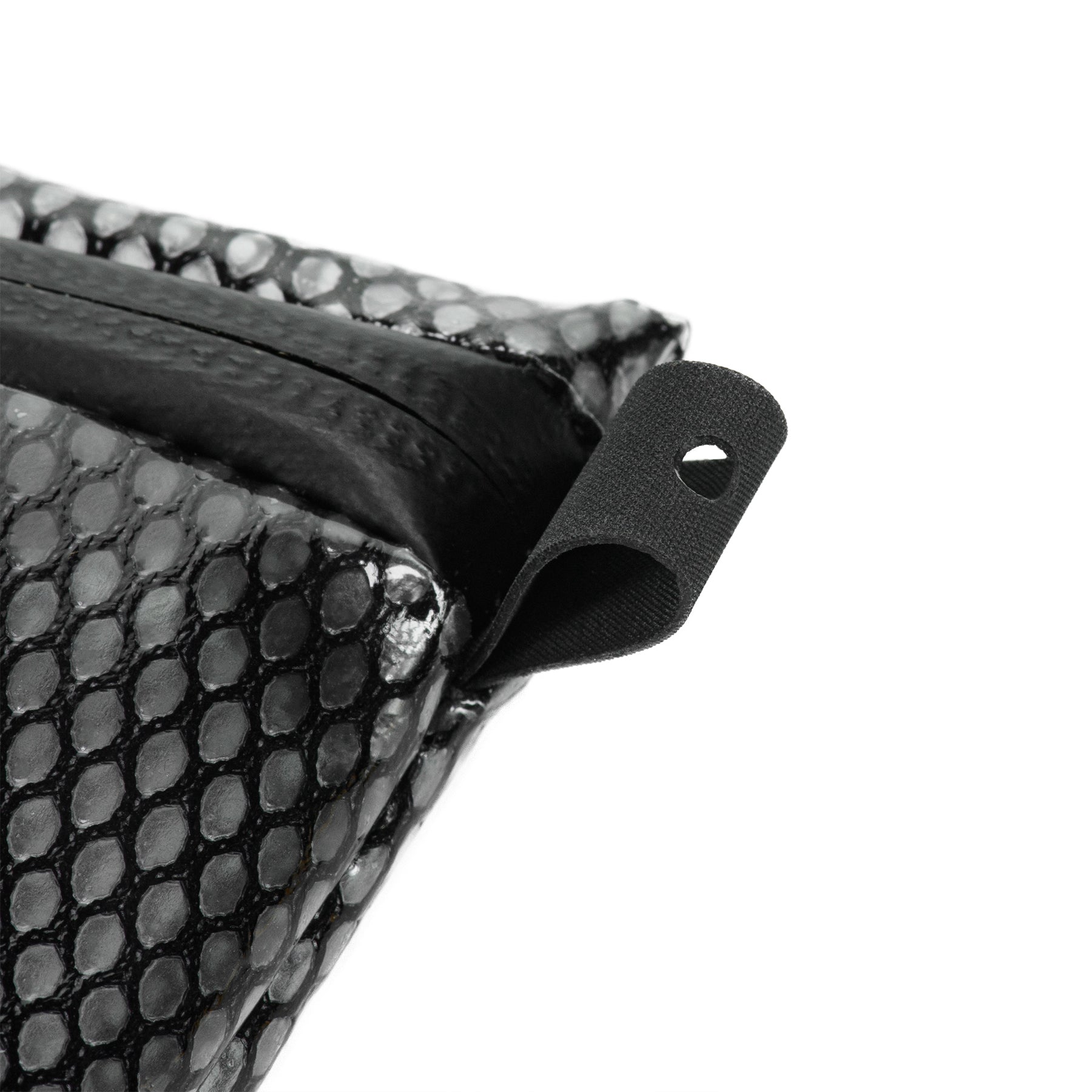 On the left side, there is a small carabiner from Woojin, a leading manufacturer of accessories. On the right side, a special loop ensures easy opening and closing.