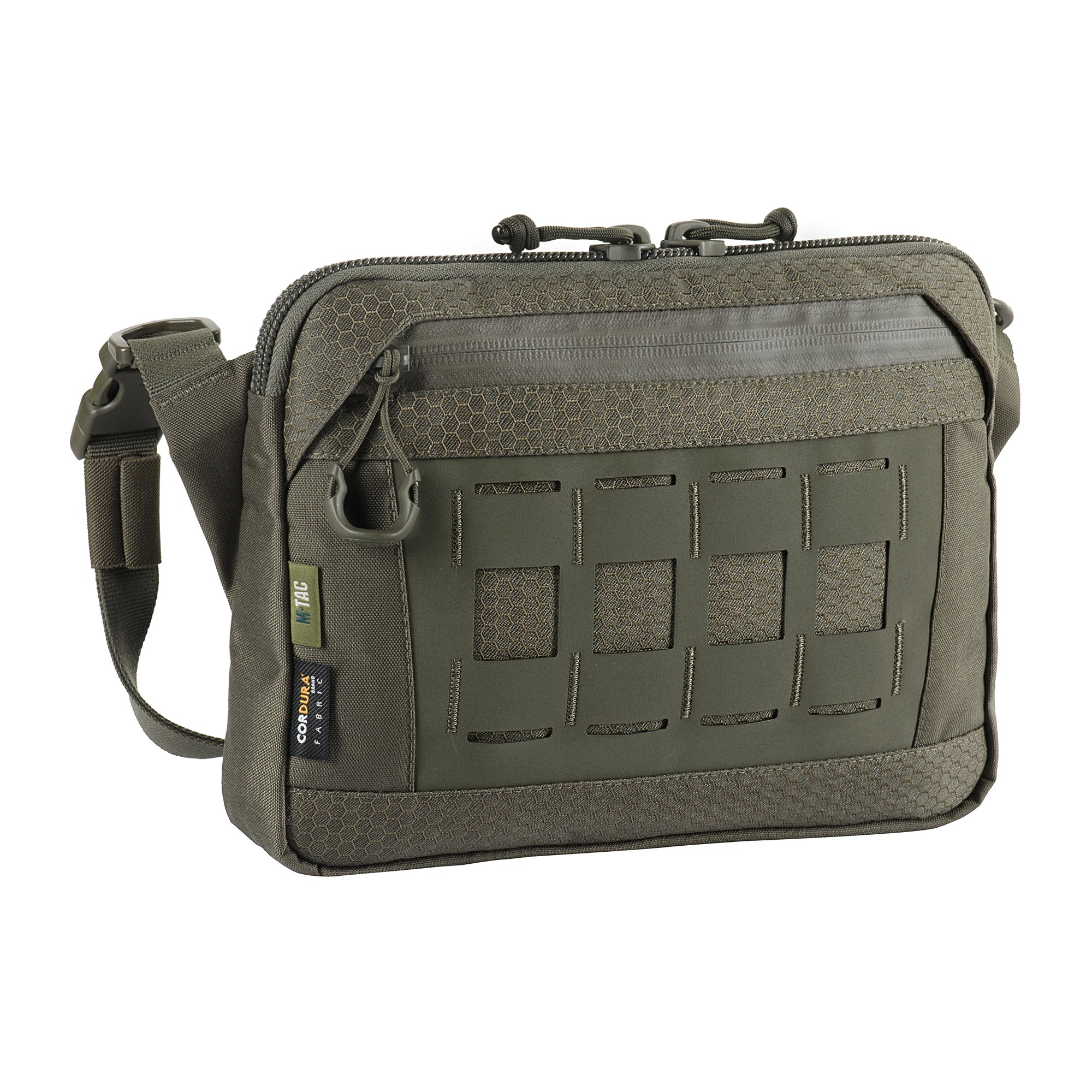 This model has two pockets and one adjustable shoulder strap with fastex. The inner wall of the main compartment is made of self-adhesive velor that allows you to attach adhesive inserts. At the front there is a mortise pocket closed with a waterproof zipper and a molle system for attaching additional equipment. The back is equipped with a soft shock-absorbing mesh with a phone pocket. The slim, compact design ensures that the bag fits nicely wherever you hang it: on the chest, on the back, or on the side. Perfect for hunting, hiking, running, or exploring the urban jungle.