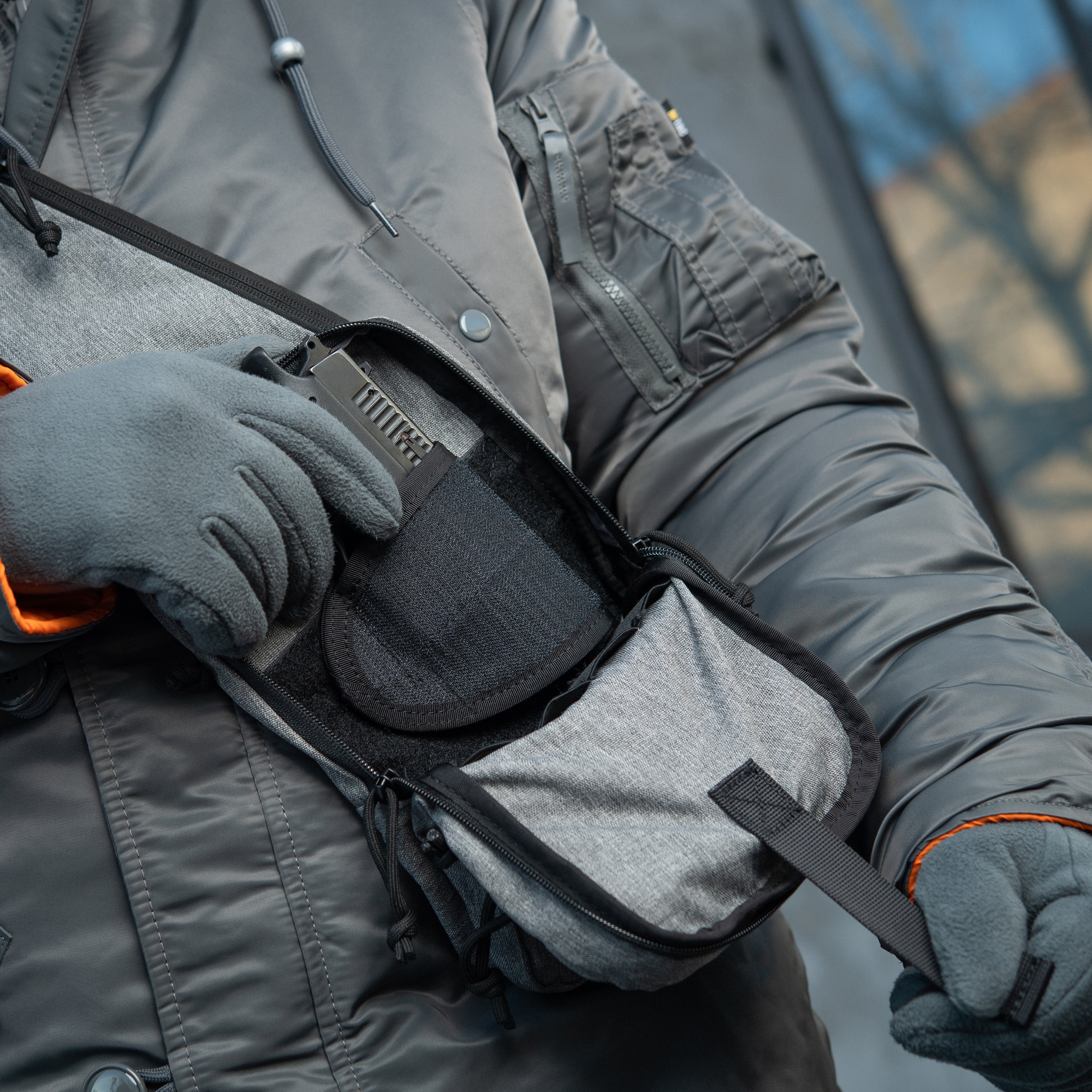 The M-Tac shoulder holster bag for men is designed for the concealed carrying of a weapon. The gun holster sling is installed inside the bag. This sling bag holster is compatible with most types of handguns. The special strap allows the bag to be easily and quickly opened to remove the weapon. The bag is equipped with a convenient adjustable shoulder strap. The tactical shoulder bag sling chest pack has five additional compartments for storing personal belongings, allowing unloading the pockets of pants, shirts, jackets, or shorts.