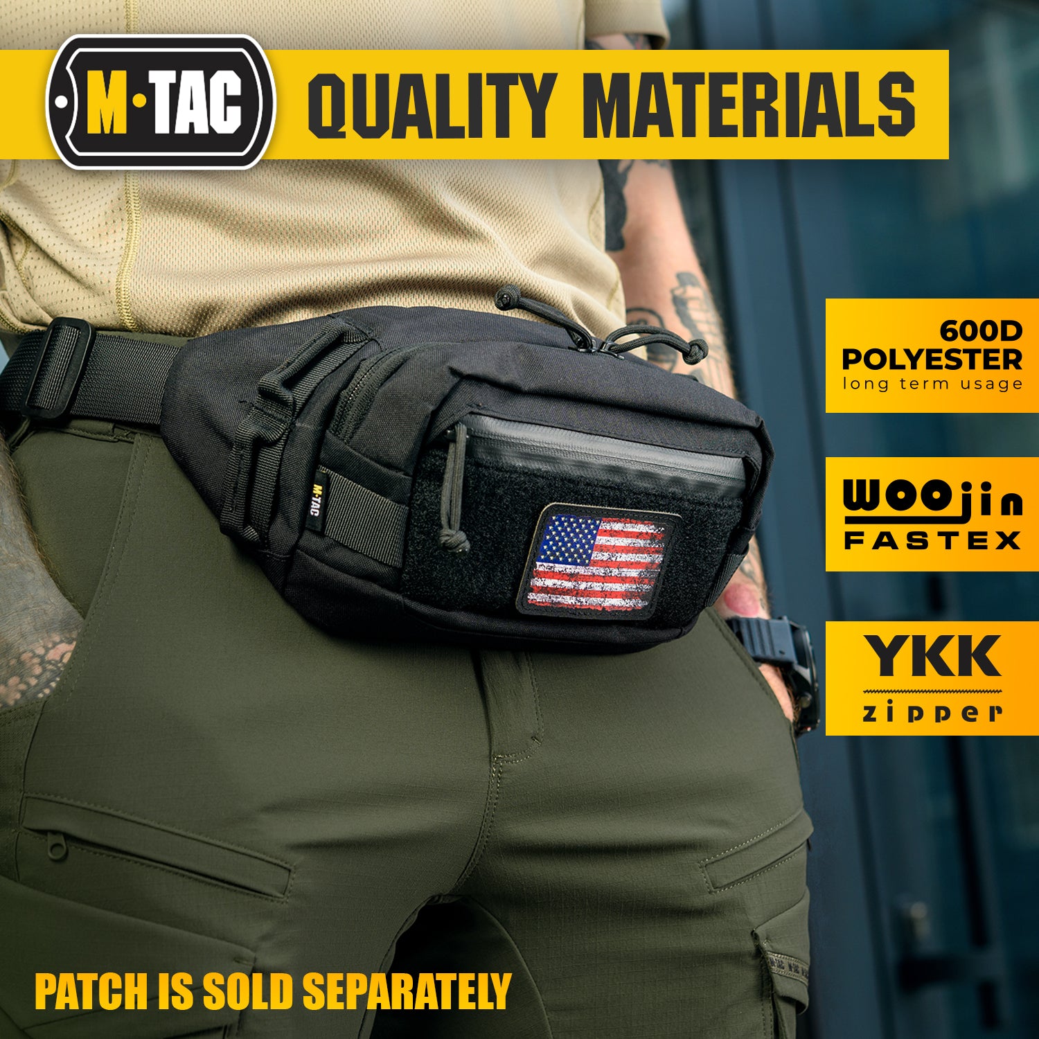The compact Tactical Waist Pack GEN.II from the M-Tac brand has a stylish appearance and well-thought-out functionality. It is made of high-quality polyester 600D - a super-strong, wear-resistant and easy-to-care material. Zipper sliders are equipped with paracord loops for greater convenience when opening. The adjustable strap with quick-release fastex allows you to carry the bag both over the shoulder and on the belt.
