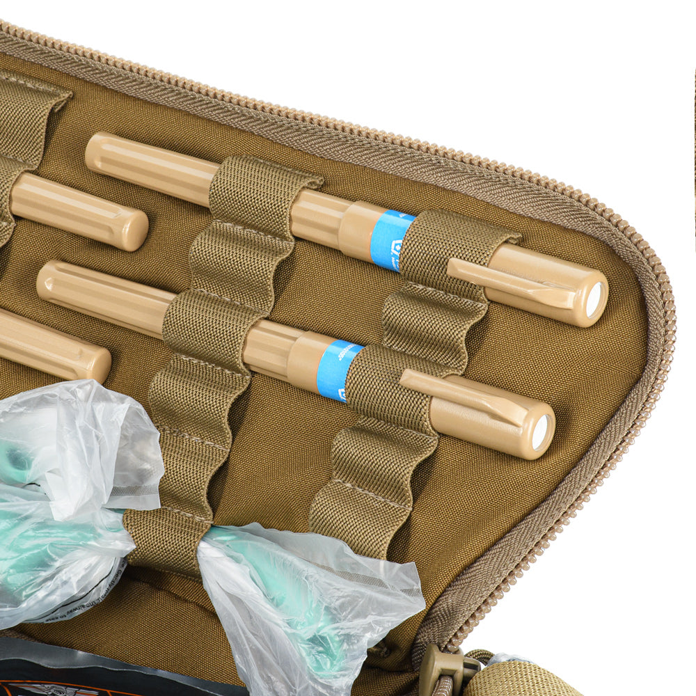 Constructed from 500D Cordura®, the bag provides excellent durability and resistance to mechanical damage. The integrated pouches’ straps, carry strap, shears holder, and stretcher webbing are made of Mil-Spec webbing (Original MultiCam®). Buckles and zippers come from world-leading manufacturers WOOJIN and YKK, ensuring long-lasting performance and reliability.