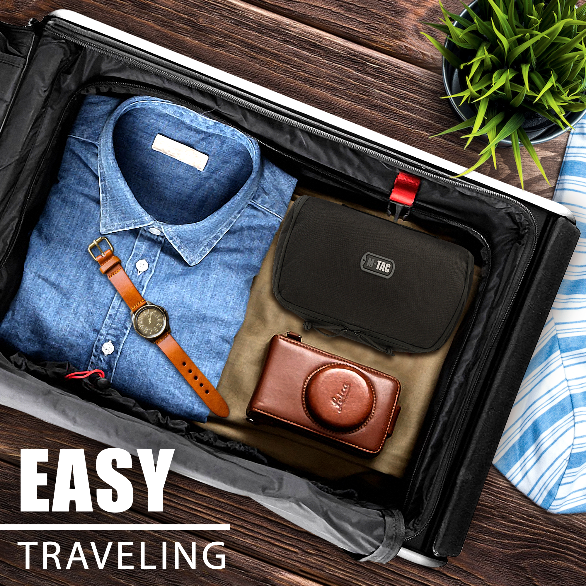 While creating this toiletry kit M-Tac had several goals in mind. This kit is designed for storing various hygiene items and other small things. It is a convenient and practical accessory that allows you to compactly store a razor, toothbrush, toothpaste, creams, shampoos, and other various little things. The bag is compact and does not take up much space, and at the same time, it can carry all the toiletries a person might need. Take your toiletries with you anywhere.