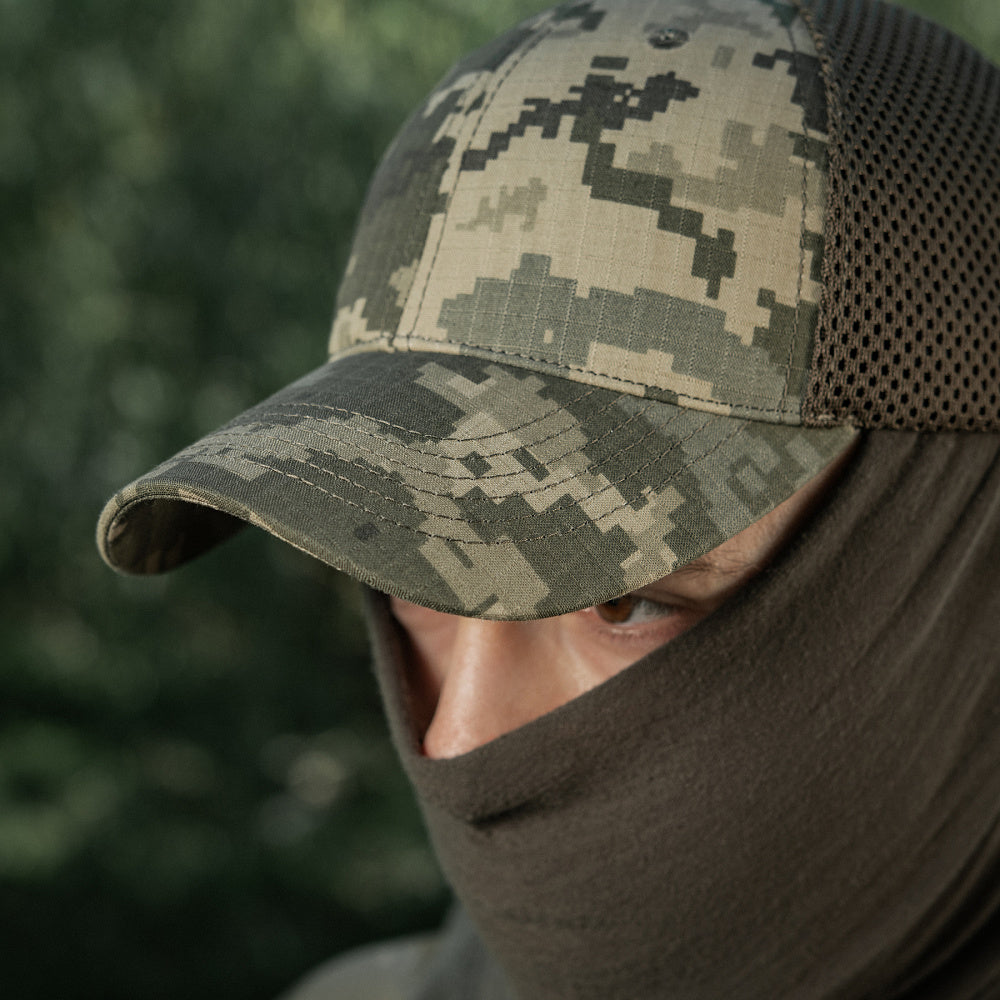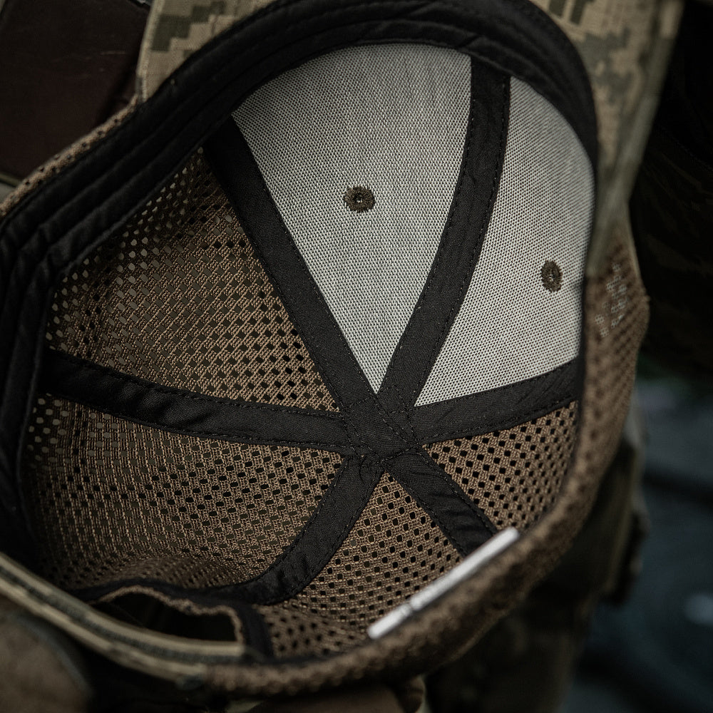 The M-Tac Mesh Cap Rip-Stop is a comfortable, durable tactical cap perfect for hot weather. It combines the strength of Rip-Stop fabric (Cotton/Polyester) with back mesh panels for superior ventilation, preventing overheating during intense activity.