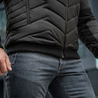 The jacket lining is made of lightweight Nylon fabric. It features one fairly spacious internal pocket on the left side, which closes with a YKK zipper. The sleeve cuffs, bottom of the jacket, and the stand-up collar are finished with a knit elastic binding that prevents cold air from entering the product and provides additional warmth.