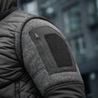 The jacket sleeves are made of a warm material blend (polyester, wool, polyamide), which combines durability, resistance to deformation, and thermal insulation properties. Areas prone to abrasion, as well as the patch pockets on the sleeves, are made of innovative Soft Shell material. This material provides excellent moisture wicking and effectively retains heat.