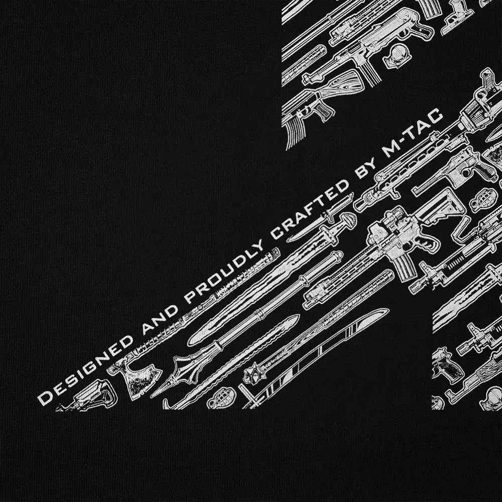 The T-shirt print depicts the word WAR, formed from various types of weapons – from ancient models to modern ones. They symbolize the continuity of the fight for freedom and the enduring spirit of warriors.
