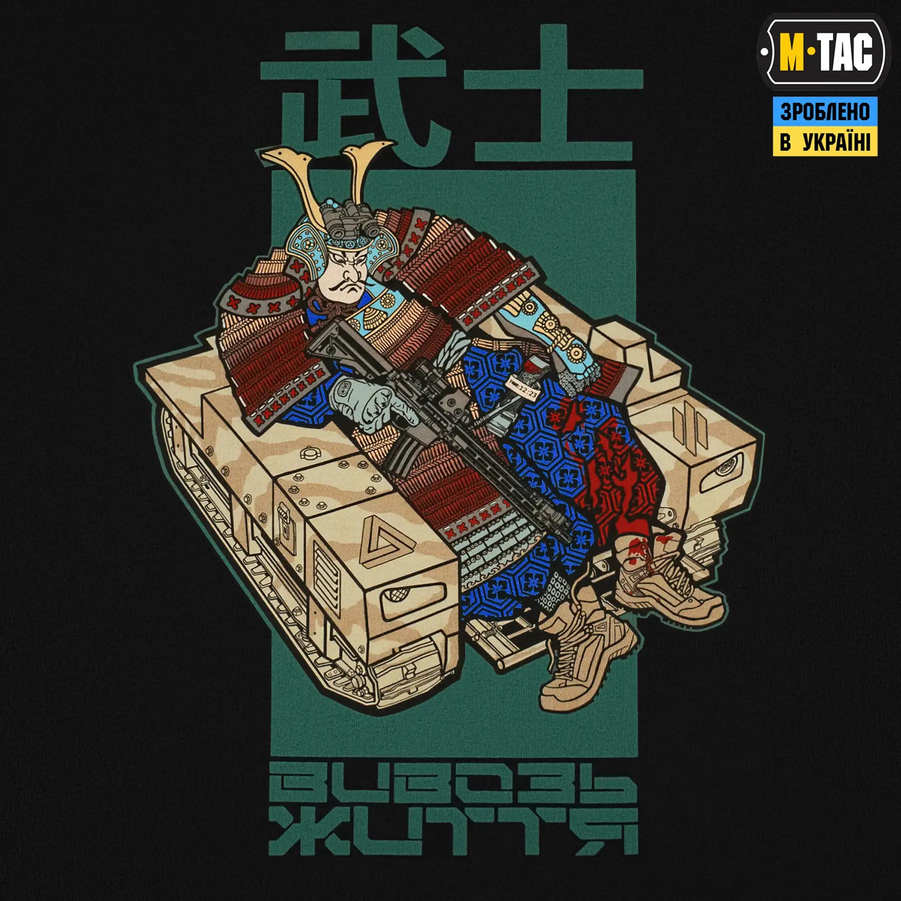 The T-shirt print depicts a wounded samurai being rescued by the TerMIT ground robotic system. It also features the logos of the 3rd Assault Brigade and the NOVA unit, for whom saving lives is a daily priority.