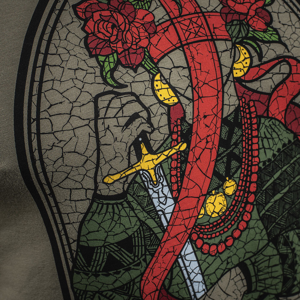 Another novelty in the M-TAC line, this t-shirt will allow you to connect with the national traditions of our country, and demonstrate to others that you know and value our cultural heritage.On the front is the image of a Motanka doll in a traditional Ukrainian outfit. Holding a sword, which is a symbol of the Cossack spirit and fighting exploits, she courageously stands in defense of Ukraine, sending her accursed enemies to hell. The skull of one, she holds in her hand. The Motanka doll is dressed in an embroidered jacket, in which the code of the nation is "sewn". It symbolizes the connection between generations; the present, the past and the future of the Ukrainian people. The Motanka has no face, instead a cross is wound from ribbons, like the ancient symbol of the sun among the Slavs. According to folk beliefs, it protected the owner of the doll from evil spirits.On the back of the T-shirt is the inscription "M-TAC. Terra Cosaccorum".