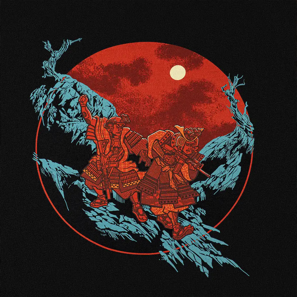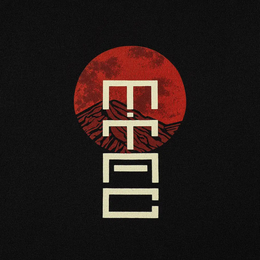 The print depicts samurai who unite the past and the present. Their image emphasizes a fundamental truth: despite the passage of time, the essence of a warrior never changes. On the back of the T-shirt, there is a stylized M-Tac logo along with slag heaps with the rising sun above them, symbolizing the rebirth of the Ukrainian Donbas.