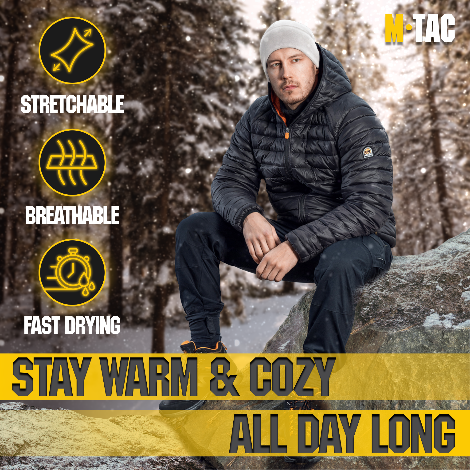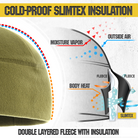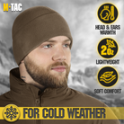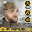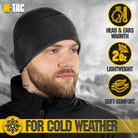 The M-Tac's lightweight and warm fleece hat for cold and extra cold weather. The beanie hat is made of microfleece with a density of 270 grams, which makes it lighter than even the finest wool. The black tactical beanie doesn't saturate the moisture and dries quickly. It also prevents itching and irritation. The low profile design fits easily under the helmet and hood. The Slimtex is a unique modern insulation that reliably retains heat, creates a feeling of softness and comfort. Slimtex is hygroscopic and hypoallergenic, and has a low thickness and high thermal insulation, flexibility, elasticity, and durability. Using this particular insulation you get reliable warmth without unnecessary bulk.