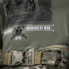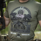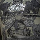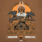 The print portrays a determined Odin who has traded his mythical spear Gungnir for a modern AR-15 rifle. Clad in tactical gear and a PNB helmet, he stands ready to lead his warriors into the ultimate battle. On his shoulders rest his loyal ravens Hugin (Thought) and Munin (Memory), who bring him news from across the nine worlds.