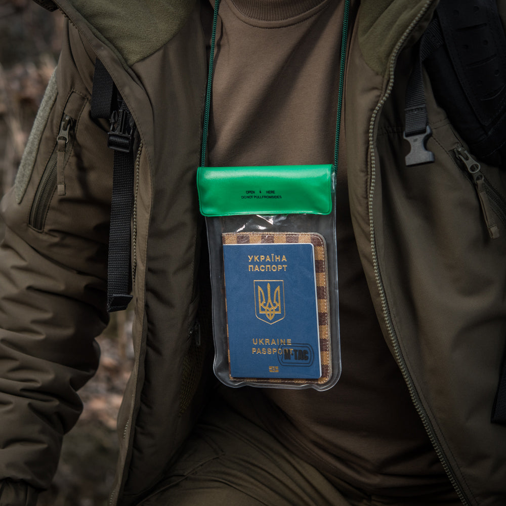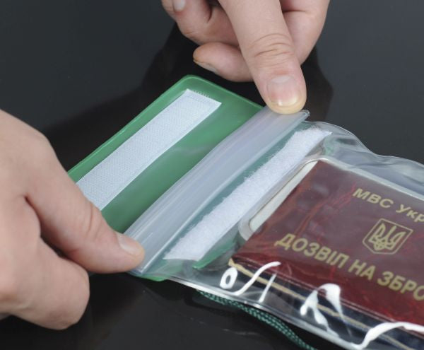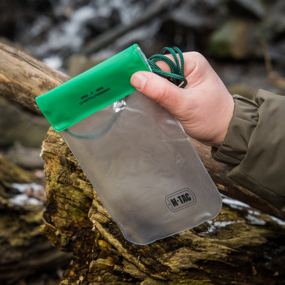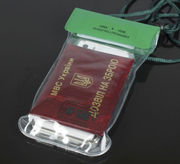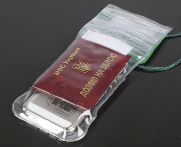 M-TAC waterproof case for documents is a silicone case. Its purpose is to protect your electronic devices, documents, cards, or money from water. It can be worn on a lace that is attached to the case. Very useful purchase for those who lead an active lifestyle, and like to spend time on the water.