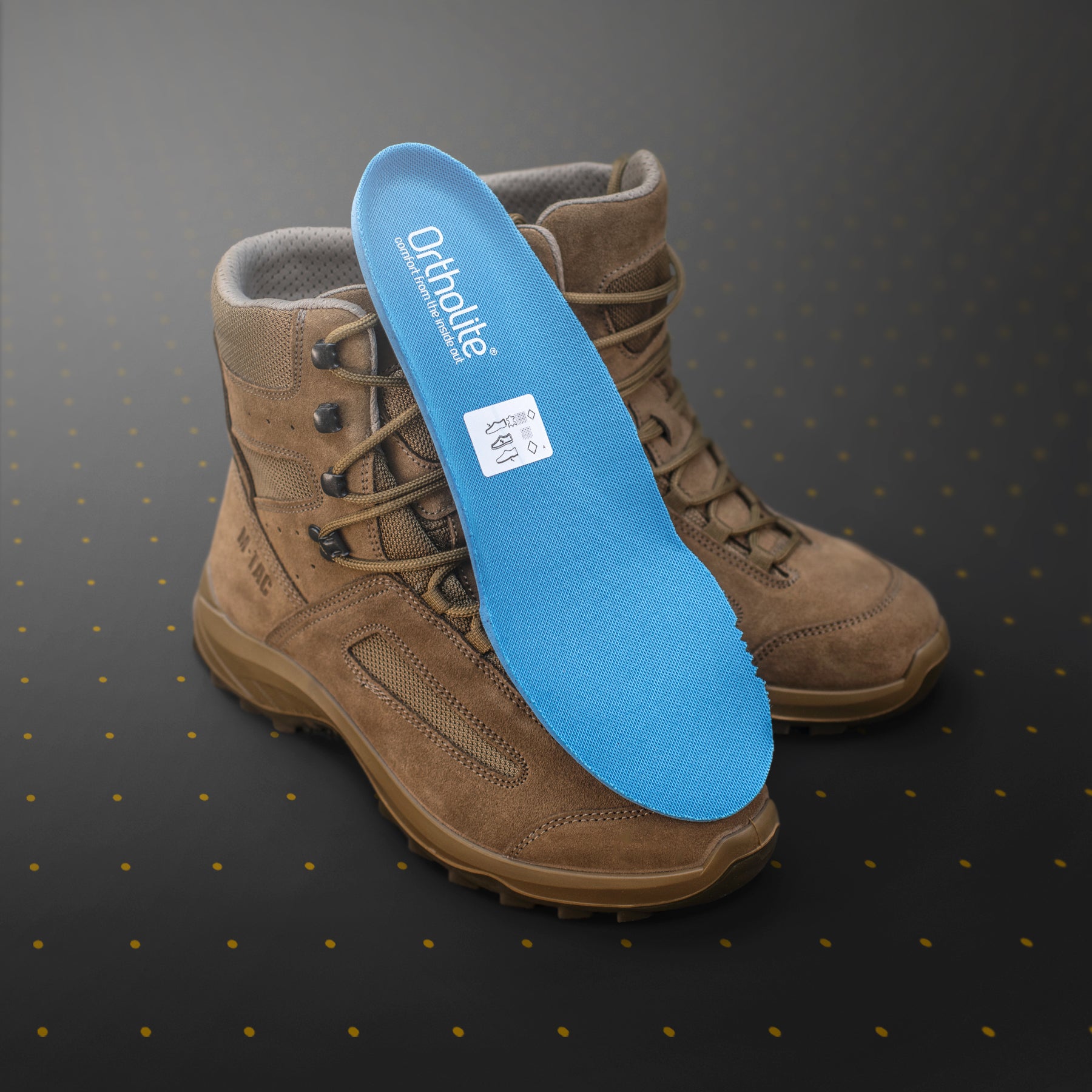 Insoles: OrthoLite® (polyurethane foam base; highly cushioning; 95% air permeable; wicks moisture)