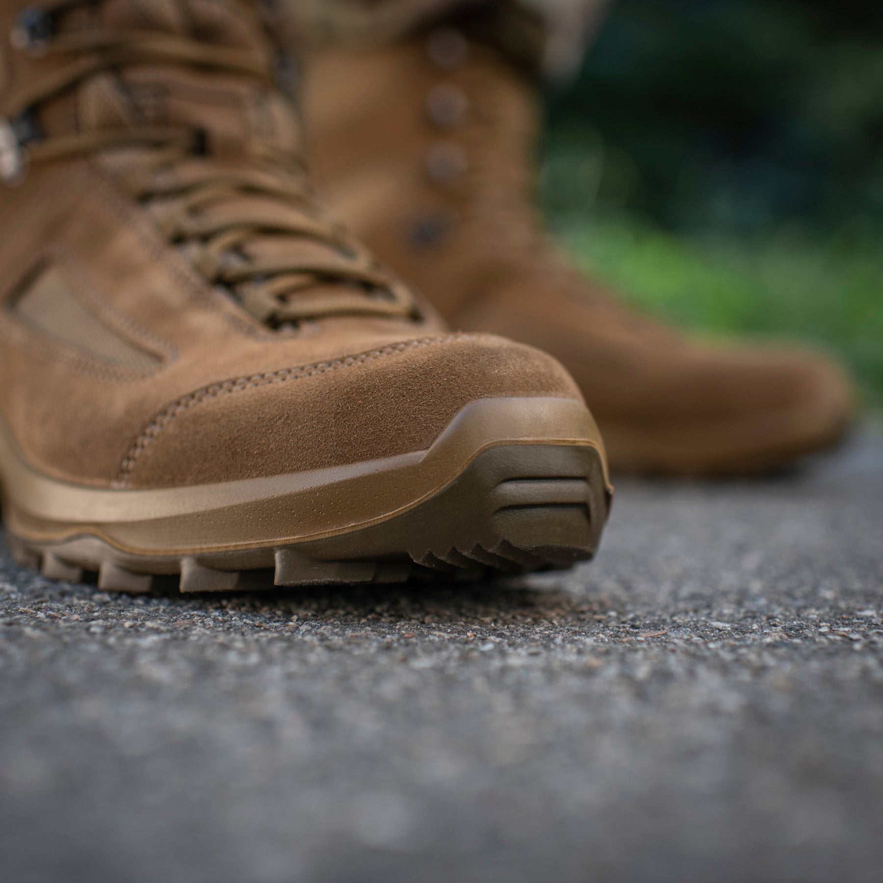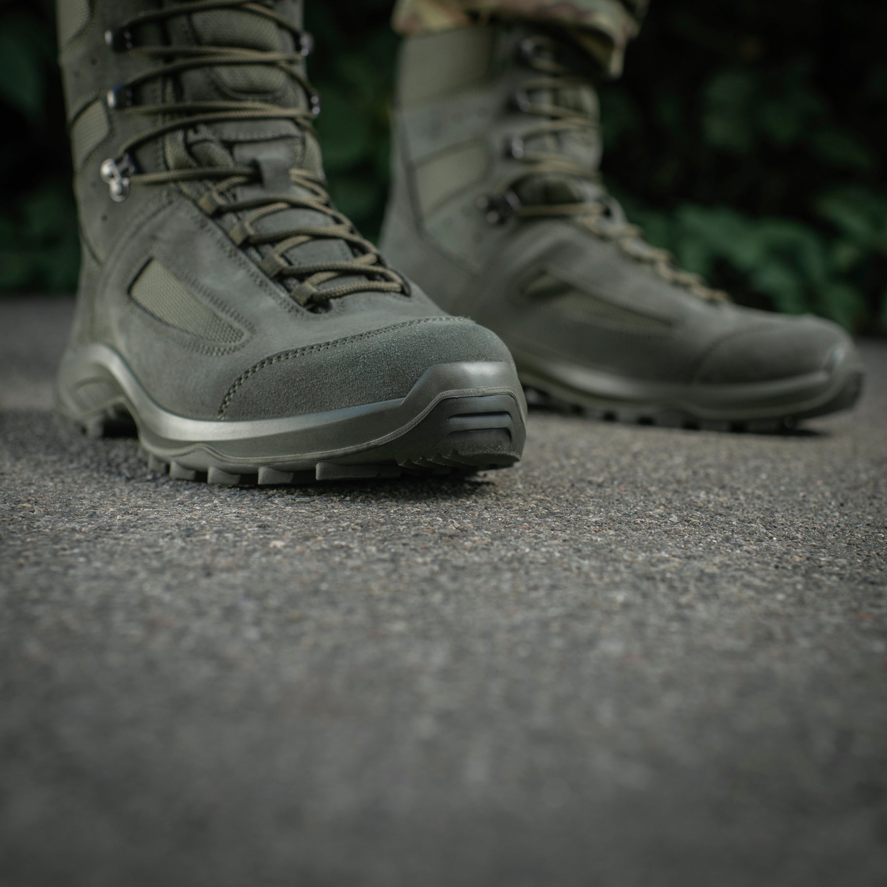 The dual-component outsole is attached using the modern and reliable direct injection molding method. The upper layer of the sole is made from flexible, lightweight thermoplastic polyurethane (TPU), which provides high shock-absorbing properties without weighing down the boot. The lower layer is made from dense TPU, ensuring high abrasion resistance and long service life. The aggressive tread provides maximum traction when walking or running. These comfortable, lightweight, and practical summer boots are ideal for military personnel, security professionals, and all active outdoor enthusiasts.