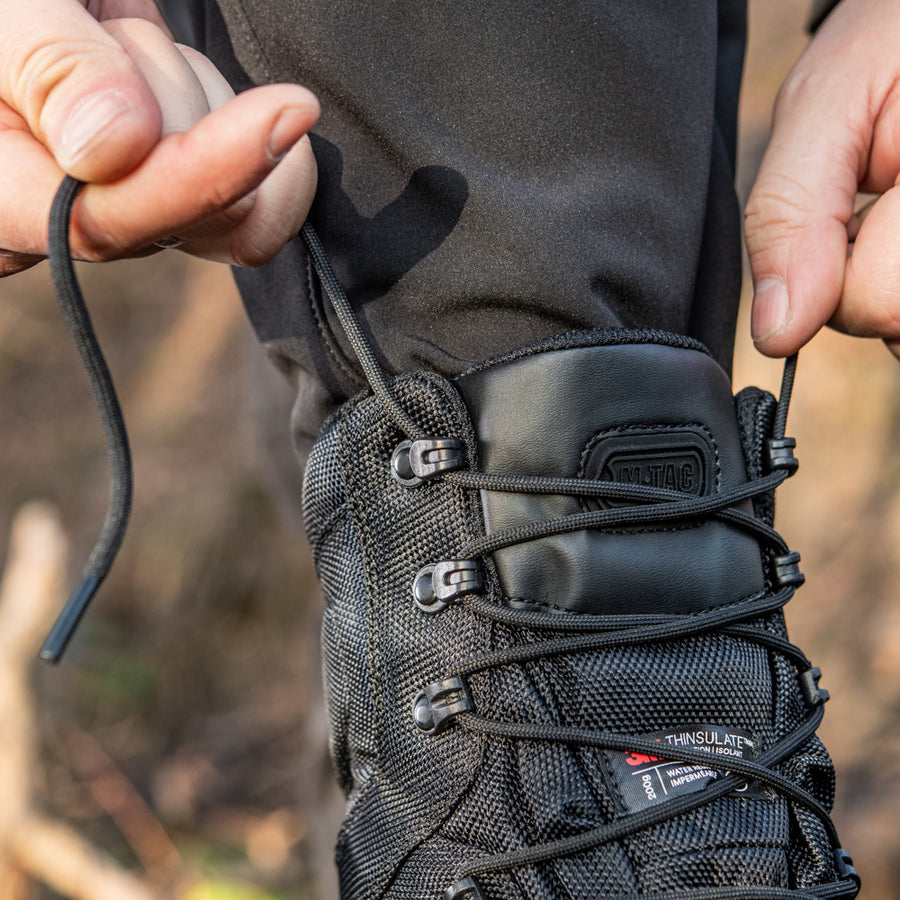 These M-Tac tactical winter boots Thinsulate are designed for extremely cold conditions. This model of thermal boots has a quick lacing system. The sole protector behaves well in snow and mud. The upper part of the shoe is made of polyester. Insulation - 3M Thinsulate 200g. Due to its texture, it reliably retains heat, is imperceptible in weight, and is resistant to crushing. Therefore, products using Thinsulate are very light and warm, which is necessary for harsh winter conditions. The Thinsulate model of tactical winter boots from the M-TAC brand is functional footwear made of technological materials. It will be indispensable in the cold, snowy winter, wherever you are: in the city, hiking, fishing.