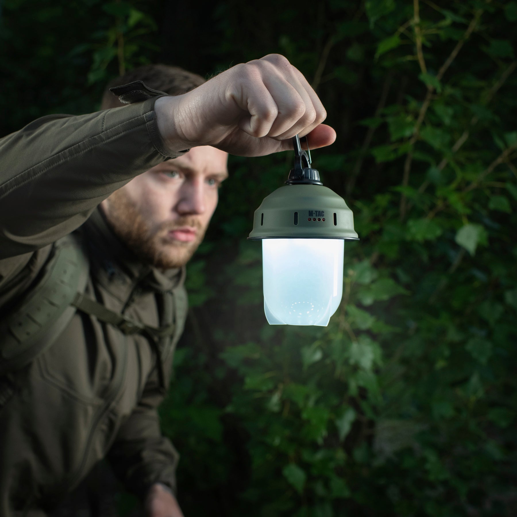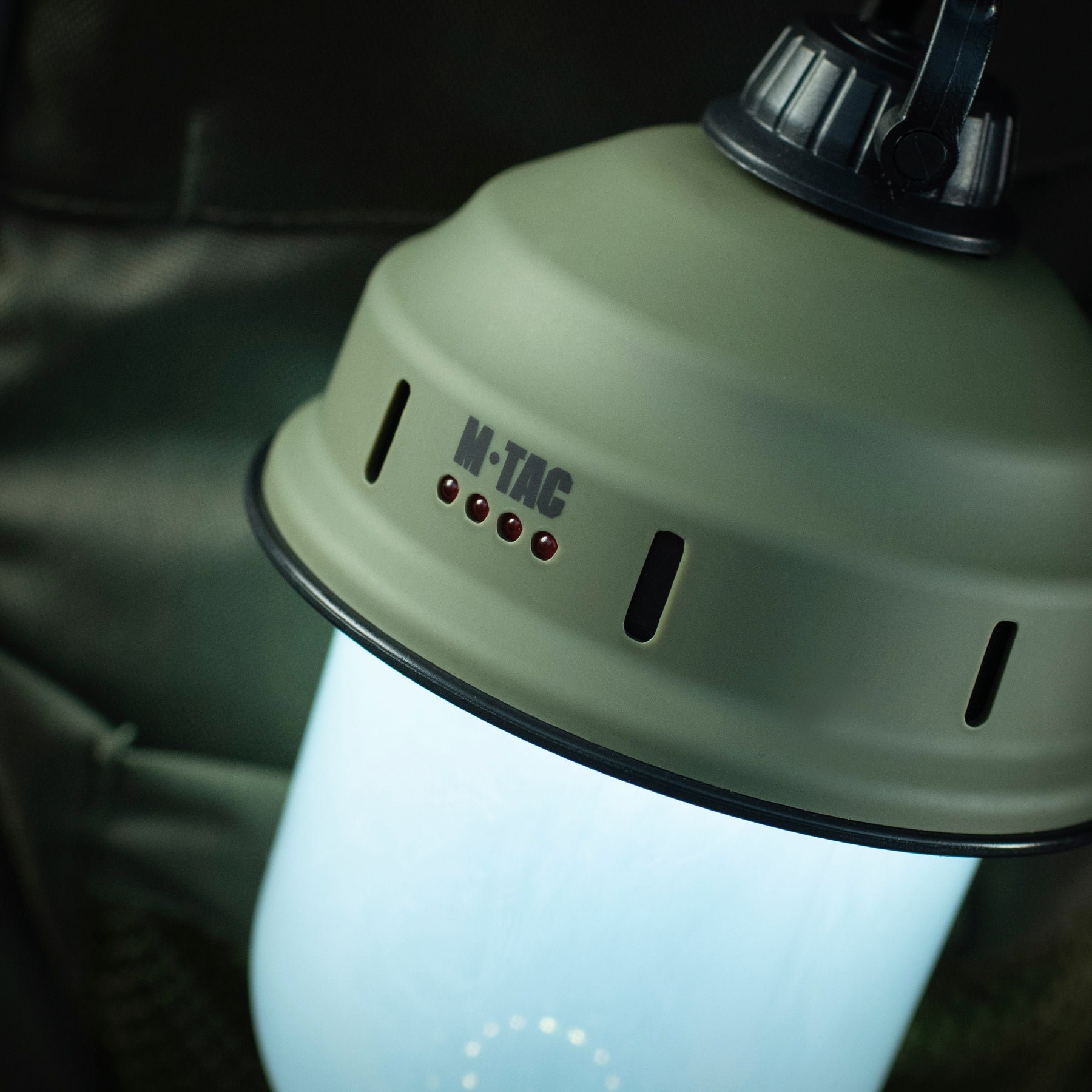 The tourist hanging flashlight is an indispensable assistant for all travellers, fishermen and hunters. The special charm gives it an external similarity with an old kerosine lamp and a milk light filter gives a soft diffused light that does not harms your eyesight. The LEDs are placed to provide the best uniform lighting. The flashlight has 3 switching modes: bright white-moon light, flamming yellow and a special colour mode that creates a light show effect. This model is charged using the supplied USB cable (included). Micro USB input and USB output are covered with rubber from potential damage. In addition, in front, there is an indicator that will allow you to control the charge stock. The convenient hook allows hanging the flashlight and using it as a stationary lighting source. Small weight and compact size allow to freely carry a light in a backpack or bag. This accessory will become an excellent addition to your equipment.
