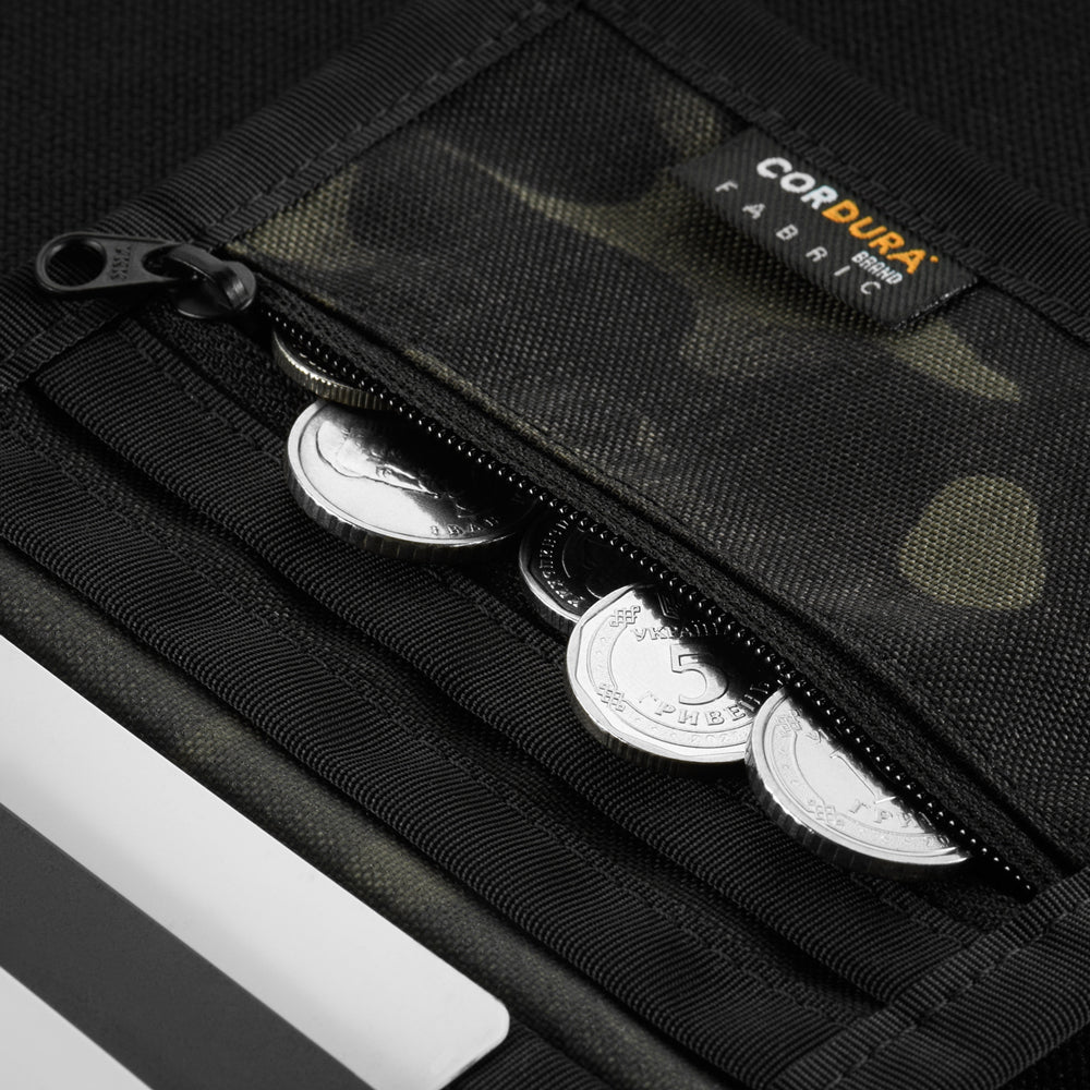 The wallet is made from Cordura 500D, a high-quality and wear-resistant material that ensures protection against mechanical damage and a long service life.