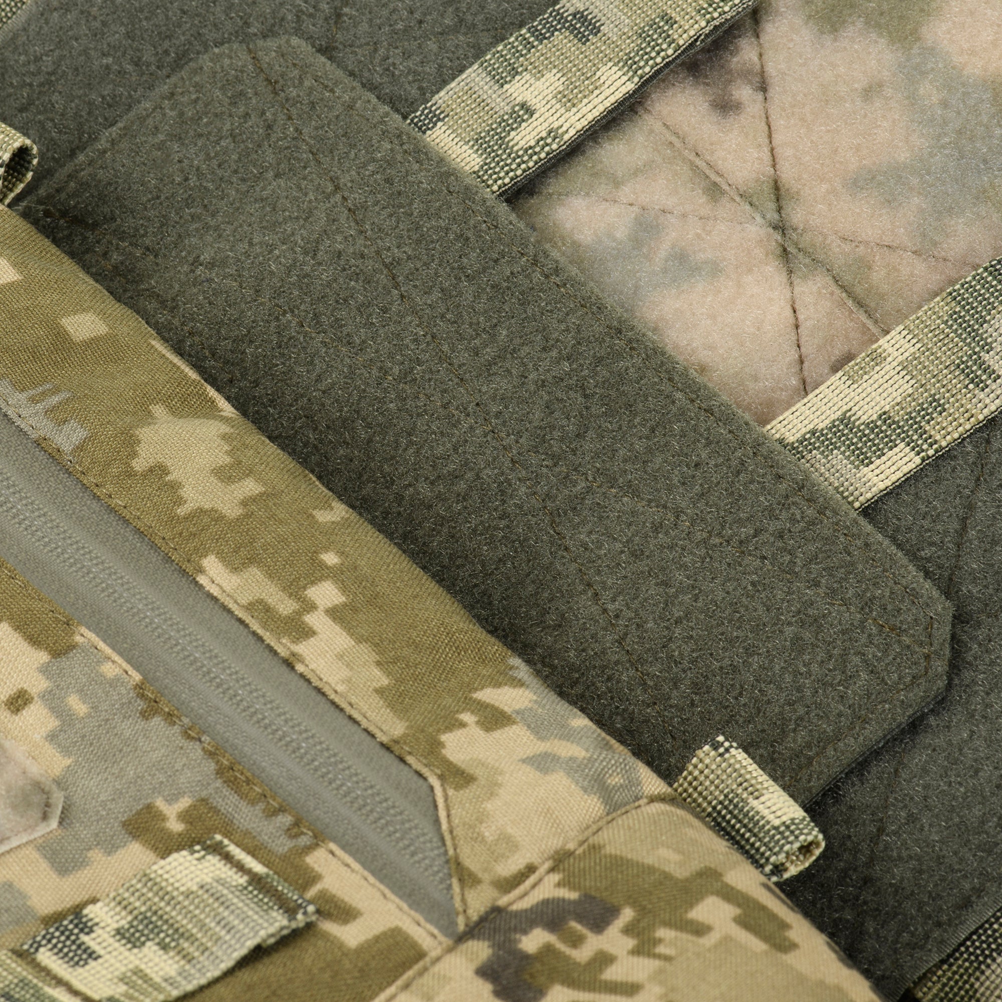 With the shoulder strap, the muff can be worn in any position as well as with a combination of different clothes. Especially for the military, this model is equipped with a velcro strap and designed to be attached to a velcro panel under the front valve of a plate carrier or bulletproof vest. If there is no Velcro panel on the vest, the muff can be attached using T-shaped connectors to the MOLLE system.