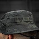 The second-generation boonie hat features a unique cut with short, semi-rigid brims that protect against sunlight while remaining more convenient for shooting. A MOLLE interface is sewn around the crown, allowing for the attachment of additional camouflage elements. The hat includes a chin cord to prevent it from flying off in strong winds and features metal eyelets for excellent ventilation.