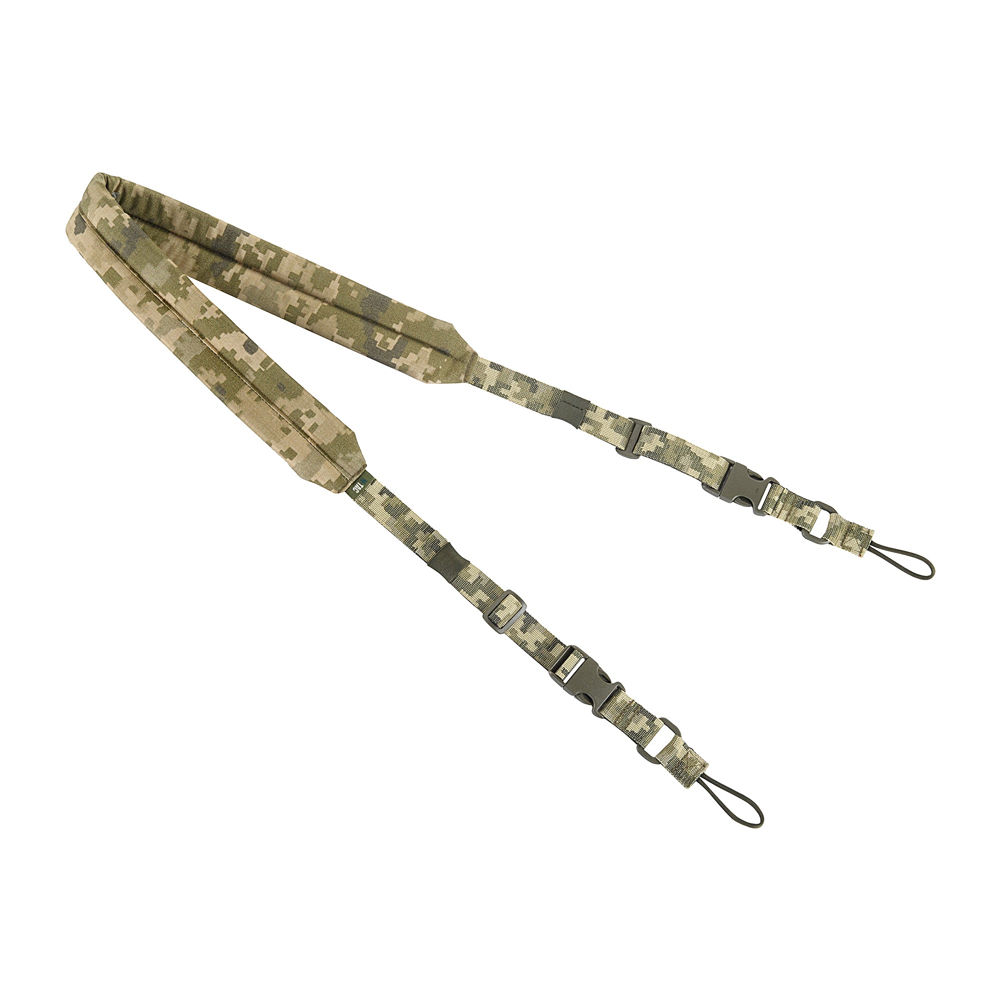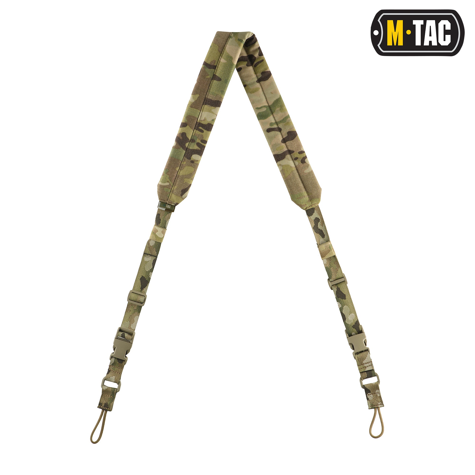 The weapon sling from M-Tac simplifies handling of a rifle or carbine. It is made from durable, wear-resistant nylon webbing. Its soft and flexible construction offers maximum mobility and comfort when operating a weapon. Attachment is secured using paracord loops. This model features a quick-release system with buckles on both sides. A soft shoulder pad prevents chafing and does not dig into the shoulder. The sling is equipped with a length adjustment system for a customized fit.