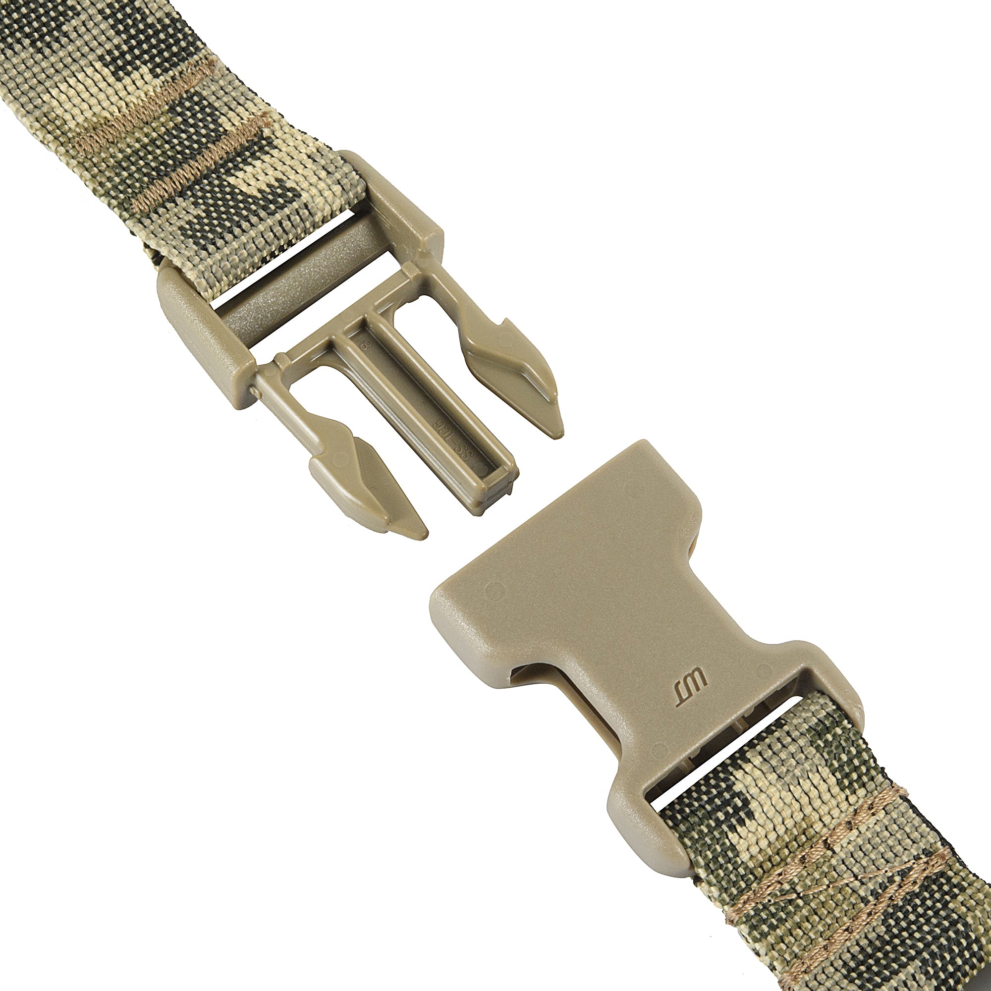 It is made of high-quality nylon webbing with adjustable length and features a quick-release system, which is especially useful in combat situations.
