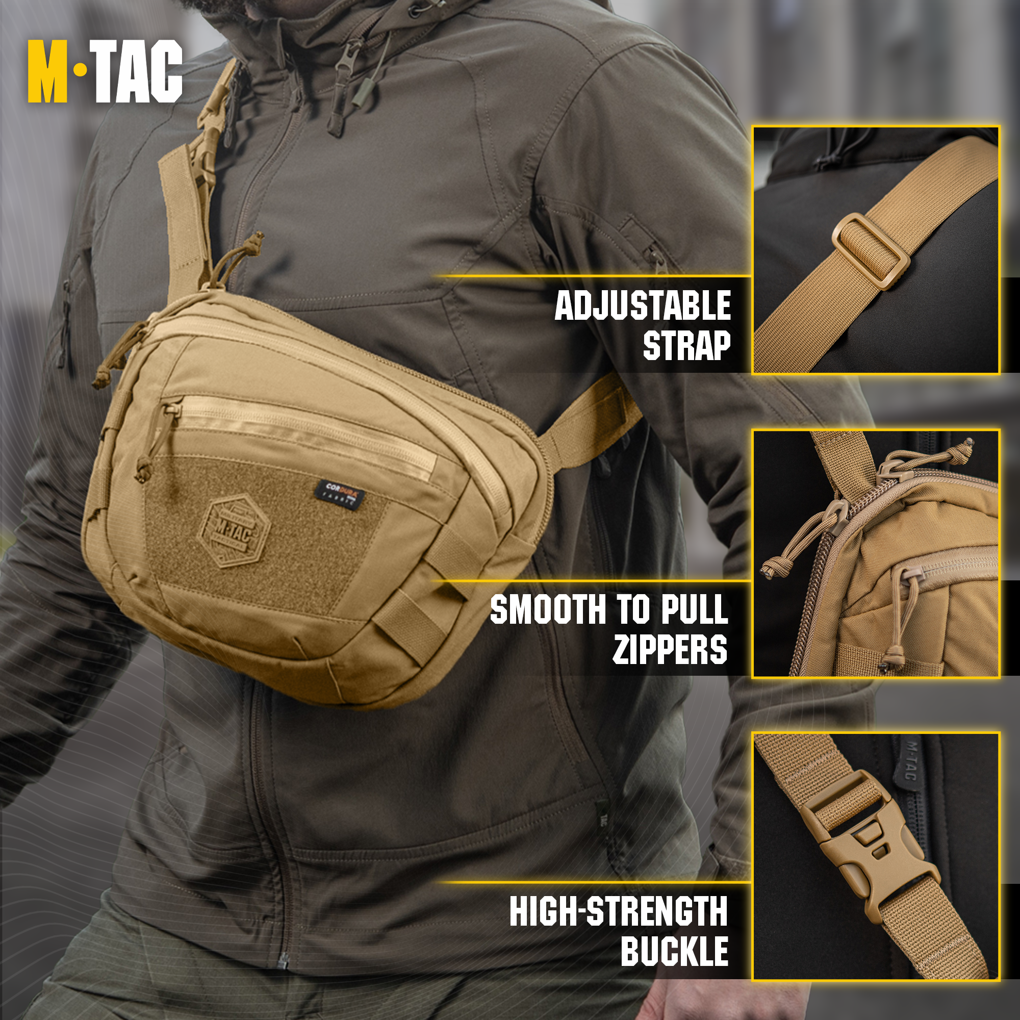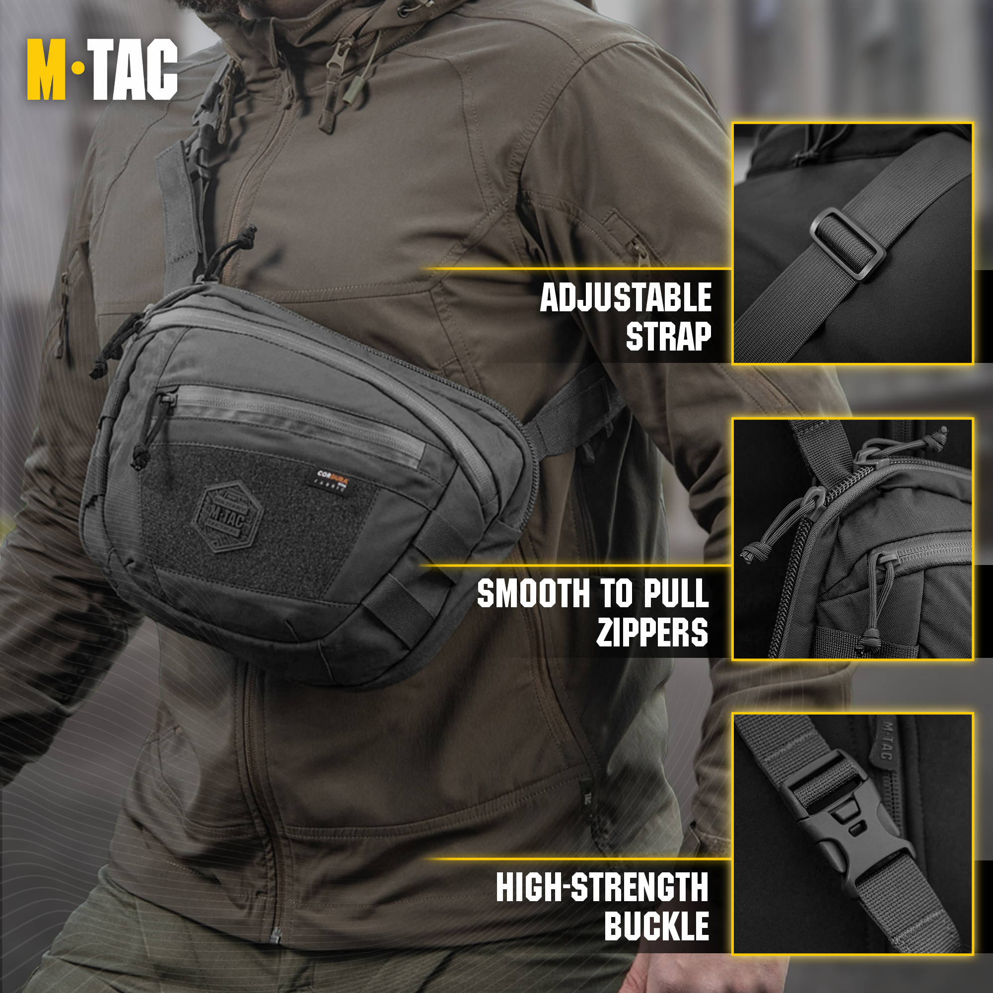 The Sphaera Hardsling Bag Large Elite from M-Tac has a stylish appearance and carefully thought-out functionality. It is made of Cordura 500D, a high-quality material, resistant to abrasion, mechanical damage and high loads. The zippers and buckles are from YKK and Woojin, world leaders in the production of accessories. This model has an adjustable shoulder strap, so the bag can be comfortably carried over the shoulder. The carefully designed compartments can accommodate all your essential items. The bag also includes a compartment for the concealed carry of weapons, while still enabling quick access. In this version, the designers have changed the location of the front pocket and added a stylish hexagon with the company logo. MOLLE straps are provided on both sides of the bag for attaching additional equipment. There is a special phone pocket on the back. The front loop panel will allow you to attach your favorite patches. The Sphaera Hardsling Bag Large Elite sits comfortably on the body and does not take up much space. All connoisseurs of convenience and practicality will definitely like this accessory.