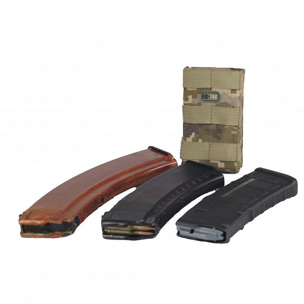 This design significantly speeds up reloads and makes magazine changes faster and more efficient. The pouch is compatible with AK-74, AKM, RPK, and M-series magazines, making it a versatile solution for different weapon platforms.