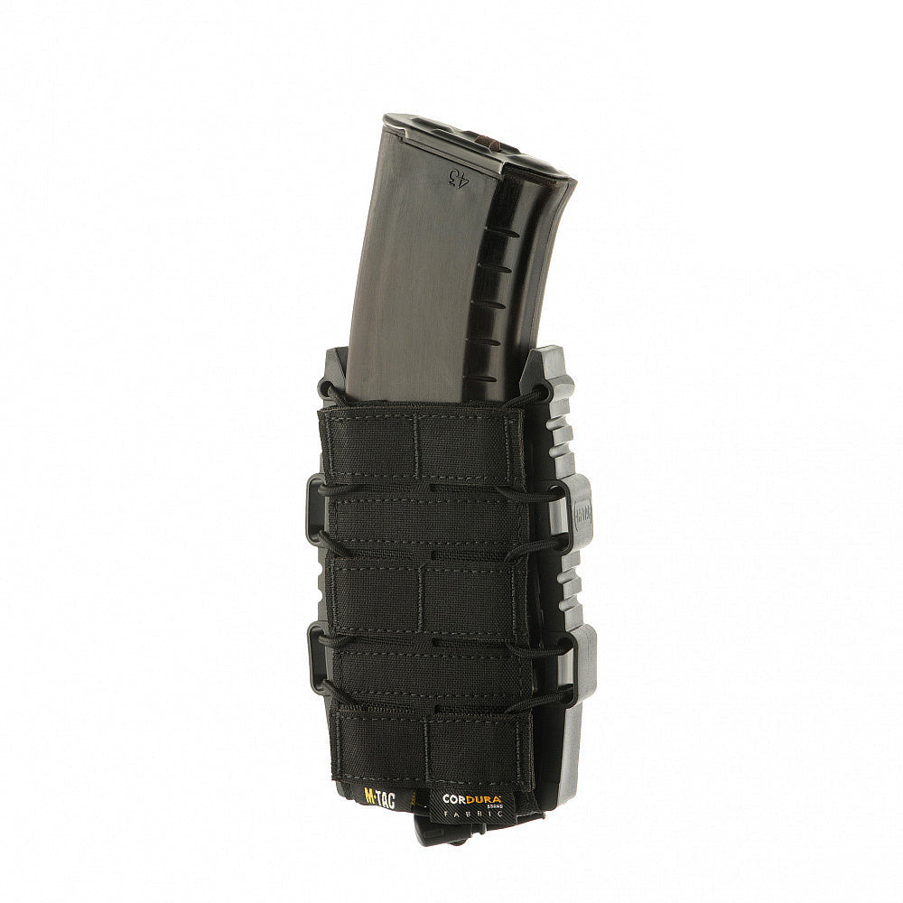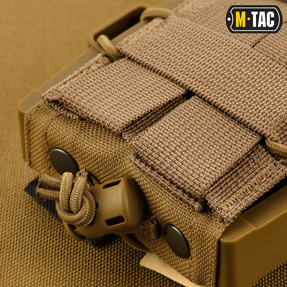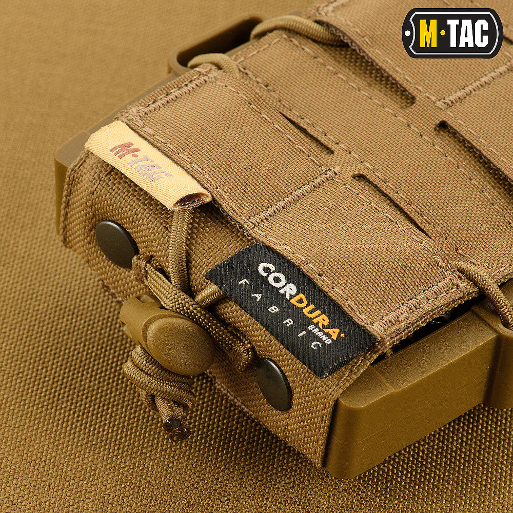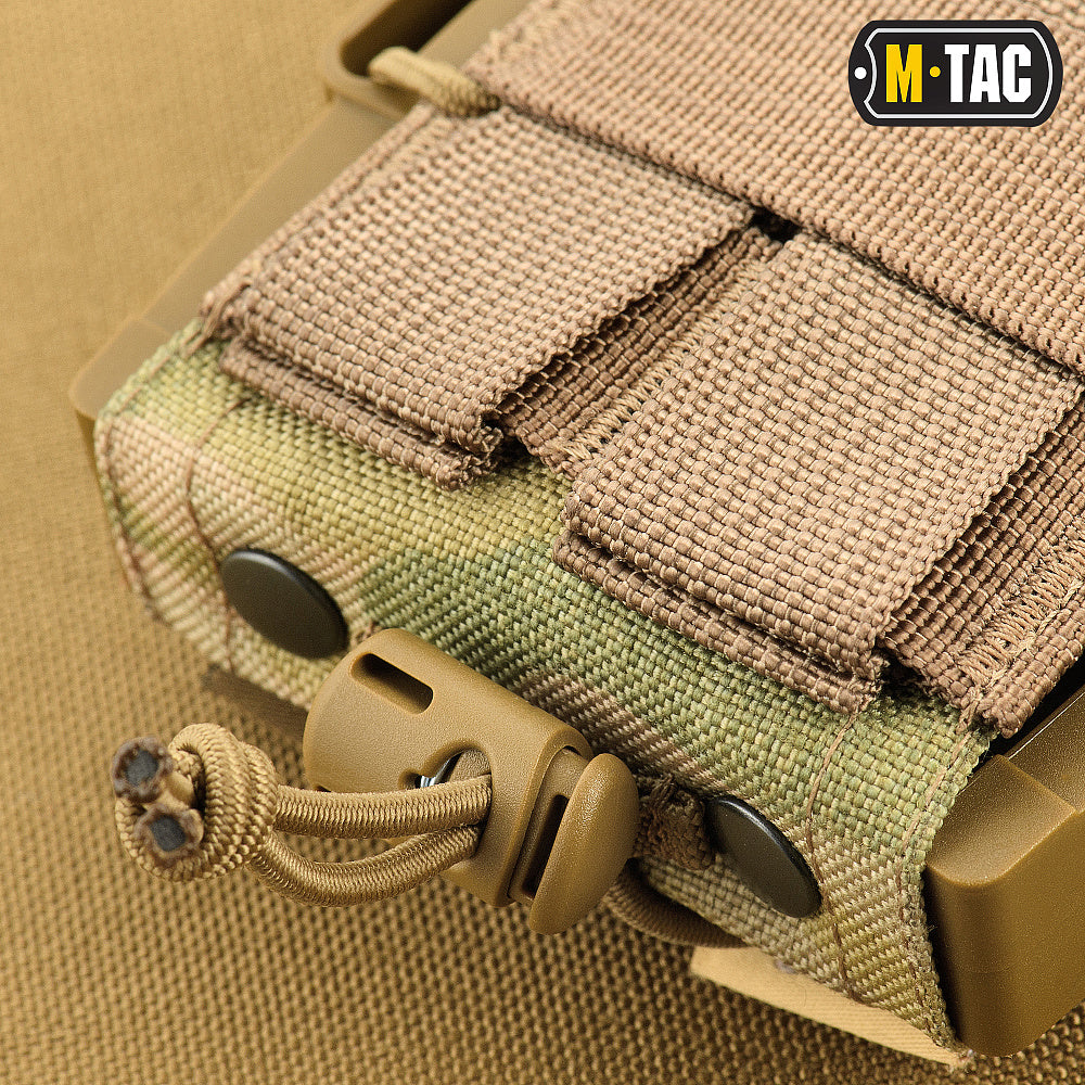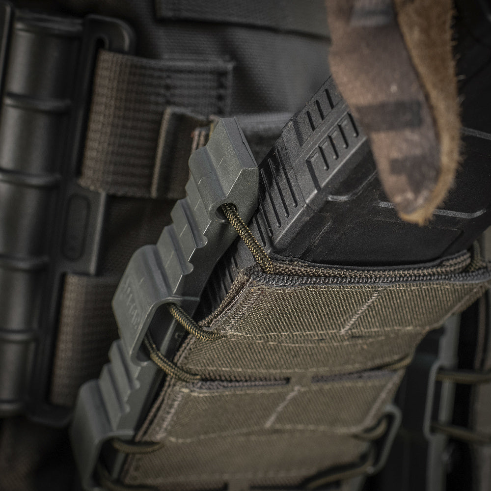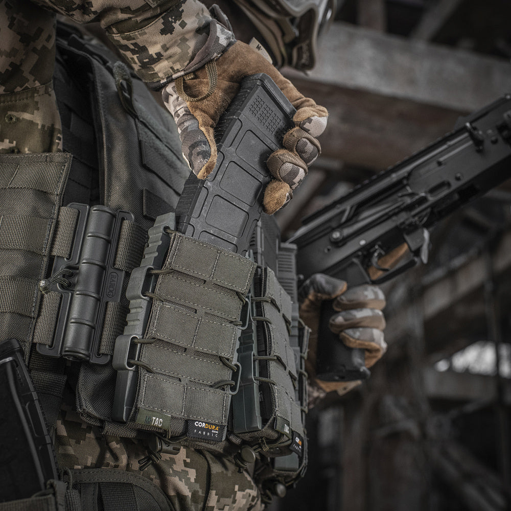 Thanks to its unique design, the M-Tac pouch securely retains the magazine, preventing it from falling out under any circumstances—even during parachute jumps or when turned upside down. At the same time, once you apply force to extract the magazine, it instantly lands in your hand, as the gripping surface remains accessible even while the magazine is still inside. This significantly speeds up reloads and makes your manipulations more efficient and faster.