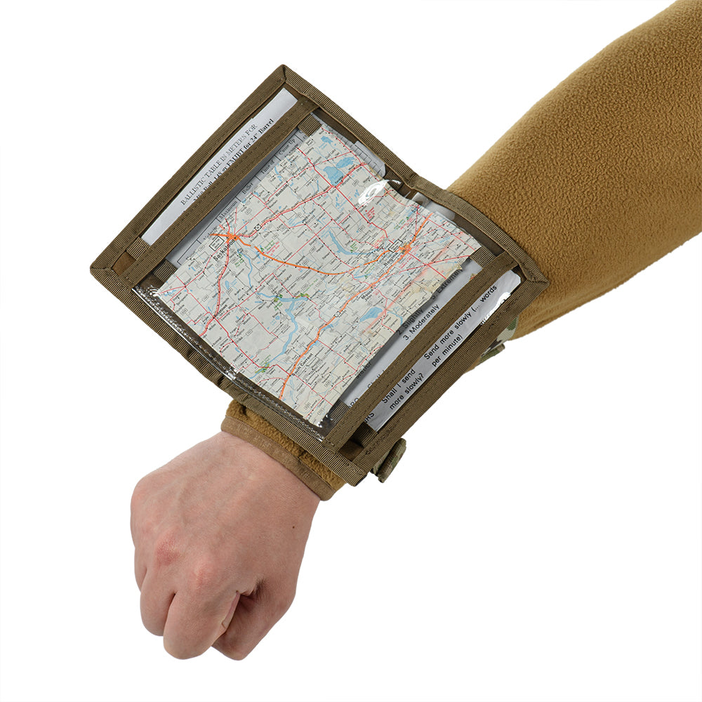 It attaches securely around the forearm and provides fast access to compartments suitable for photos, maps, notes, checklists, and more.