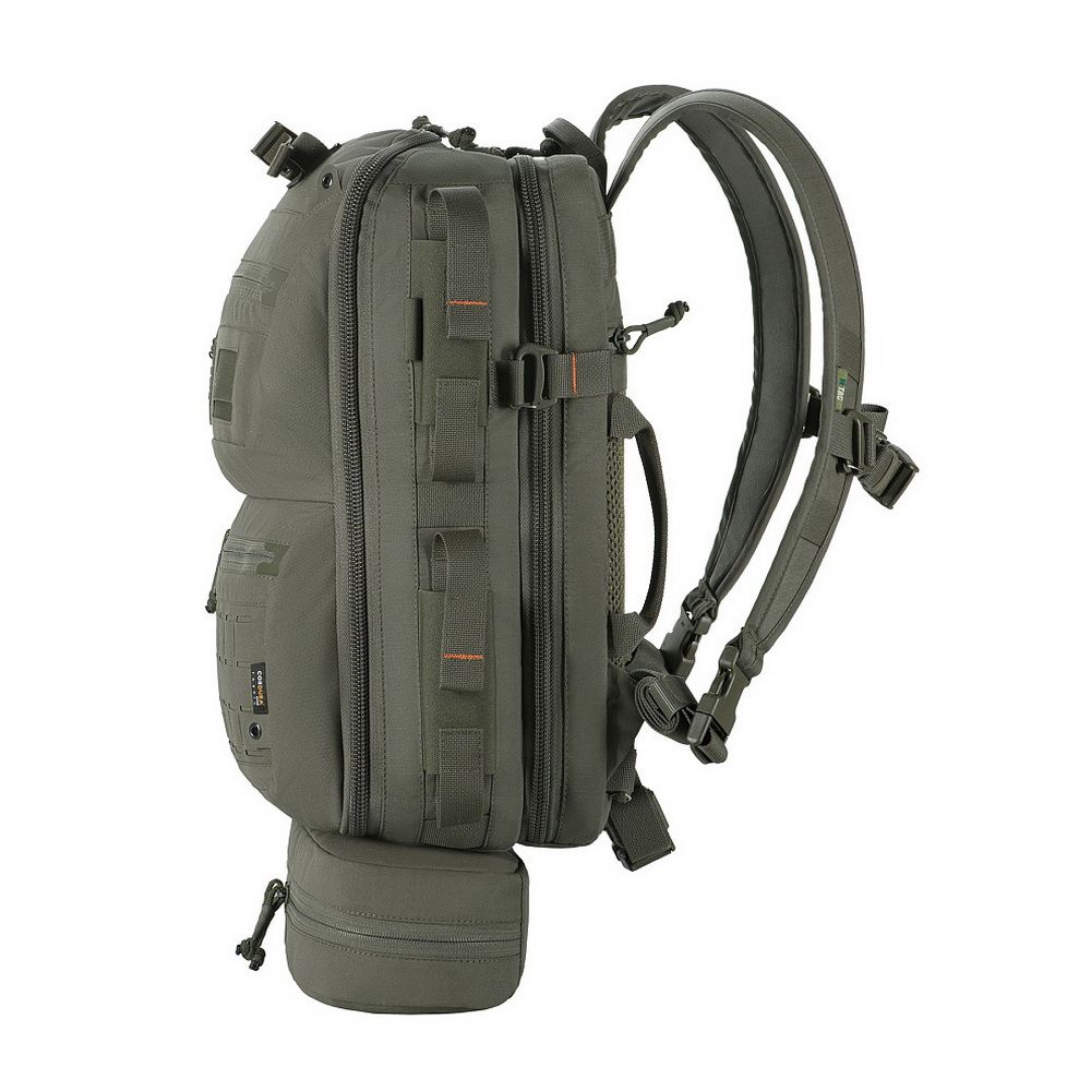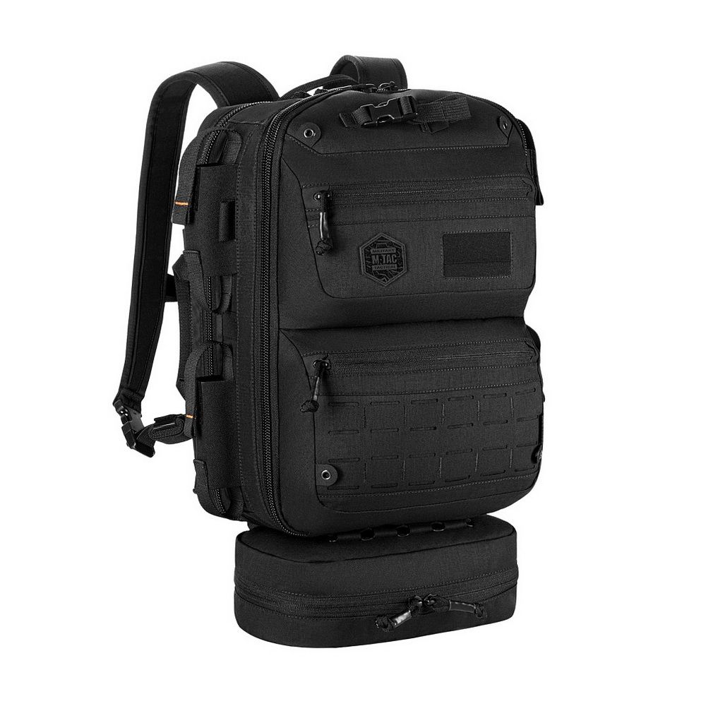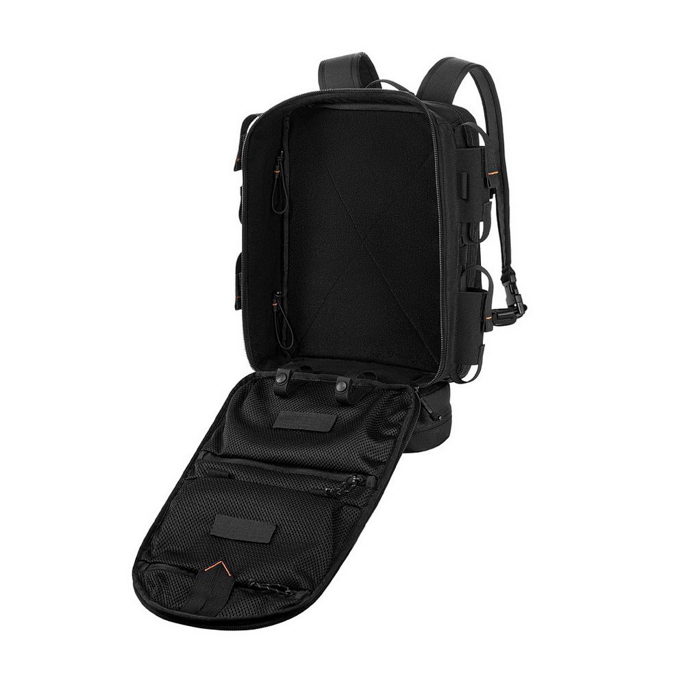 The lower compartment is equipped with a MOLLE panel for attaching additional gear.