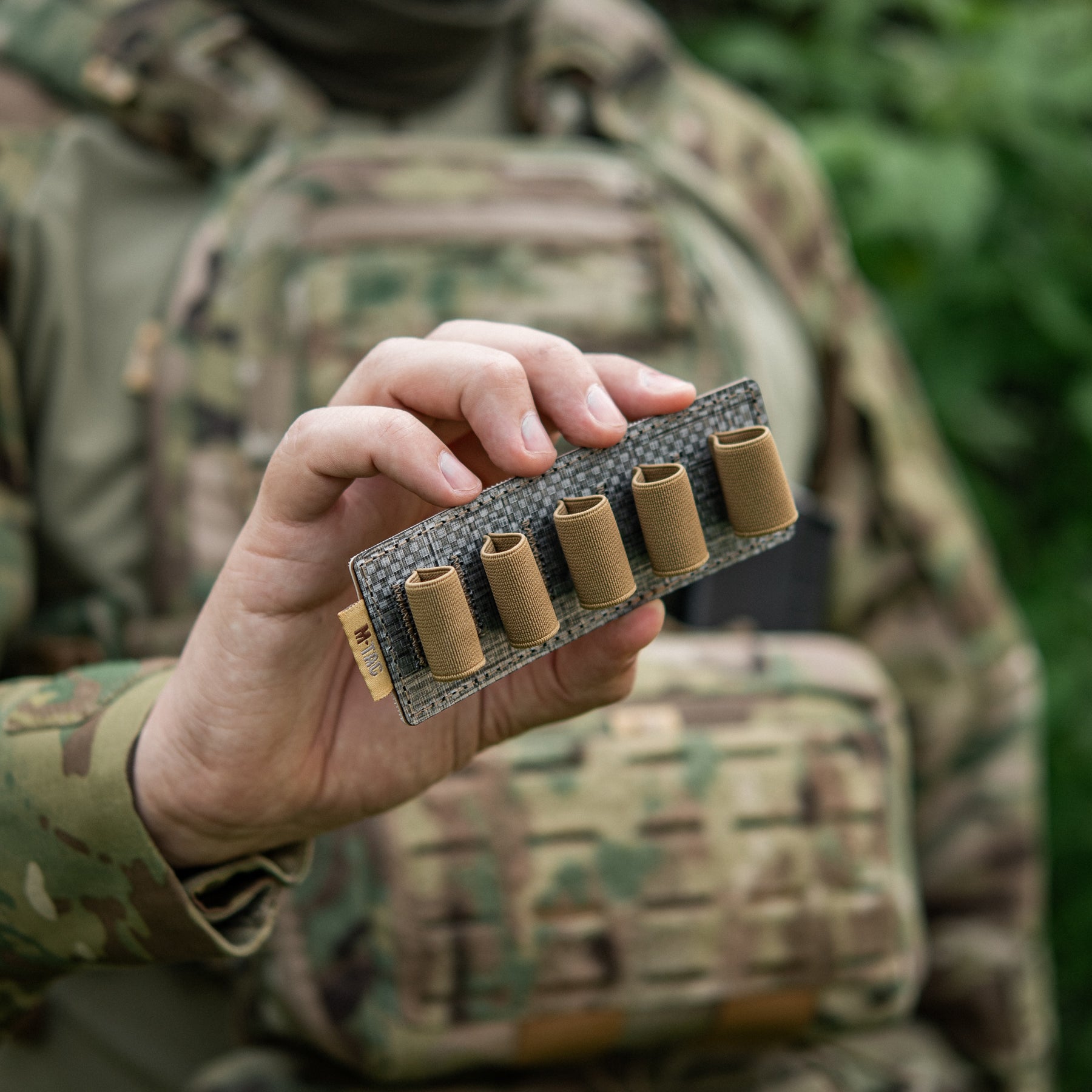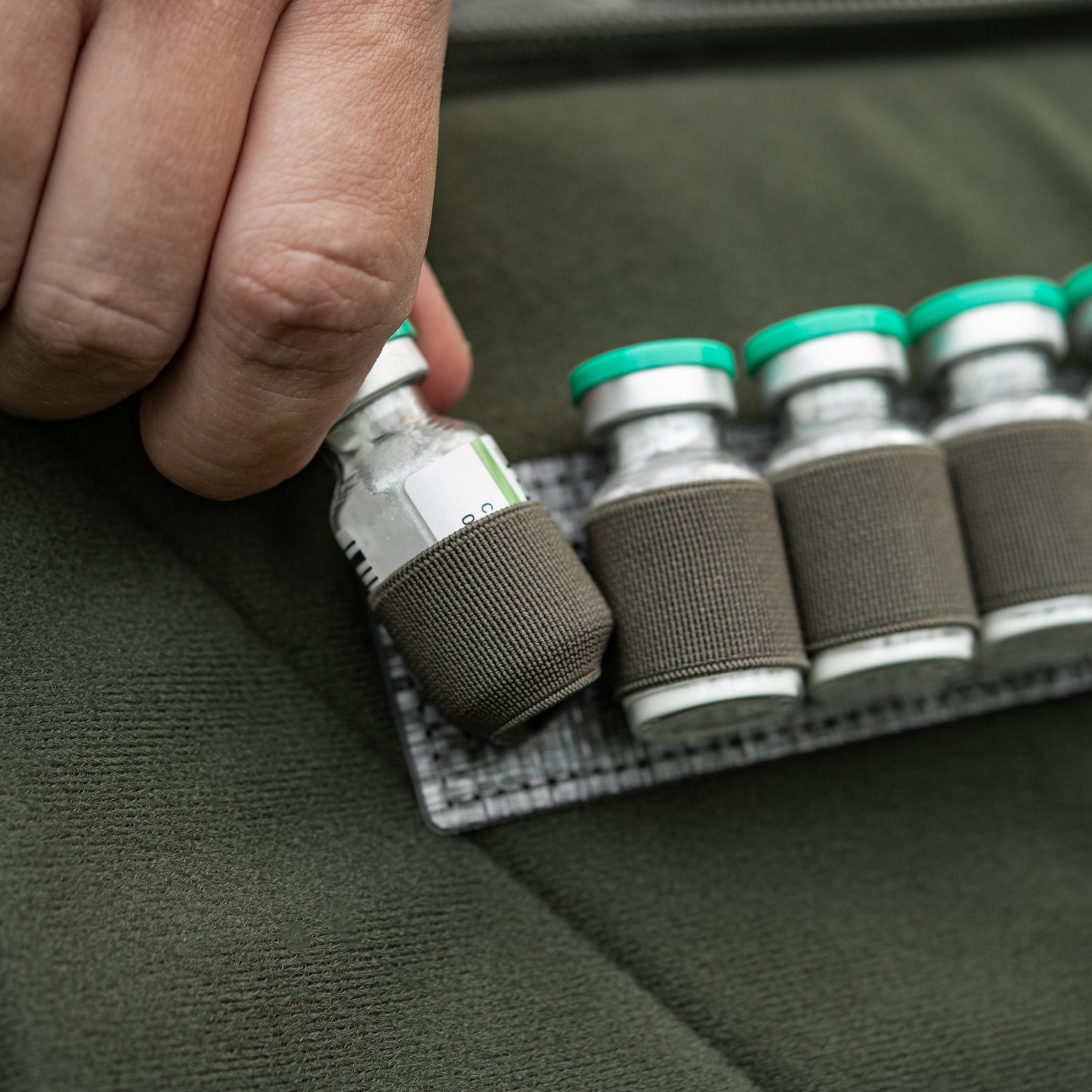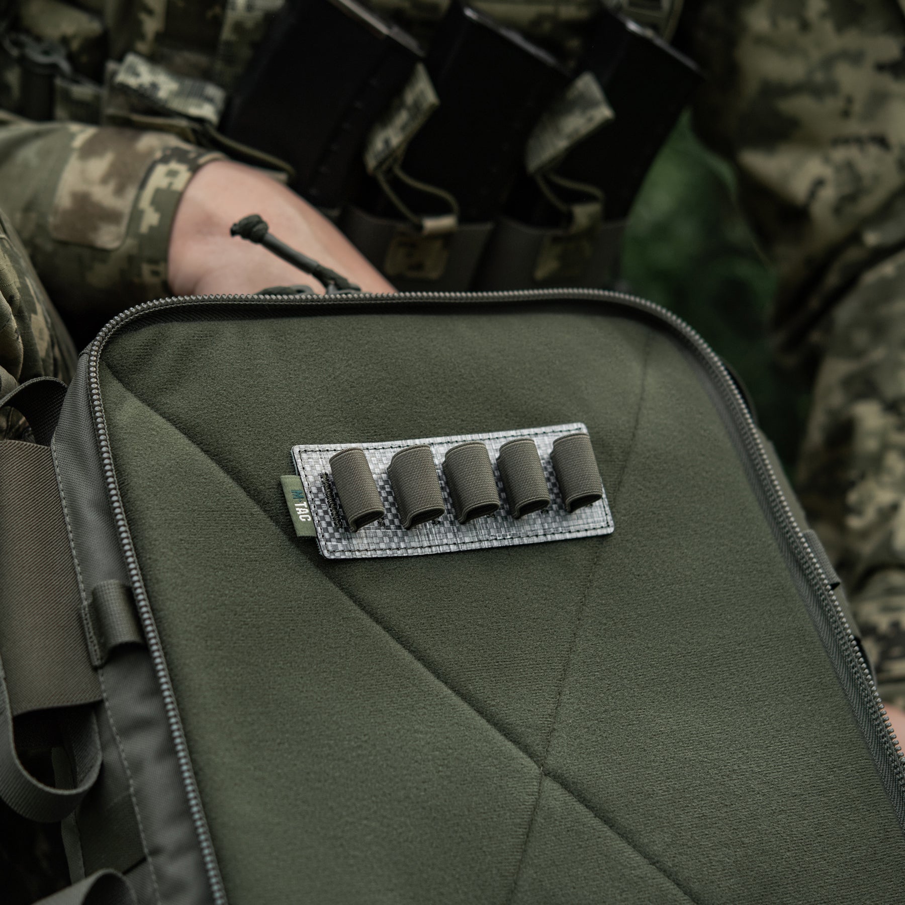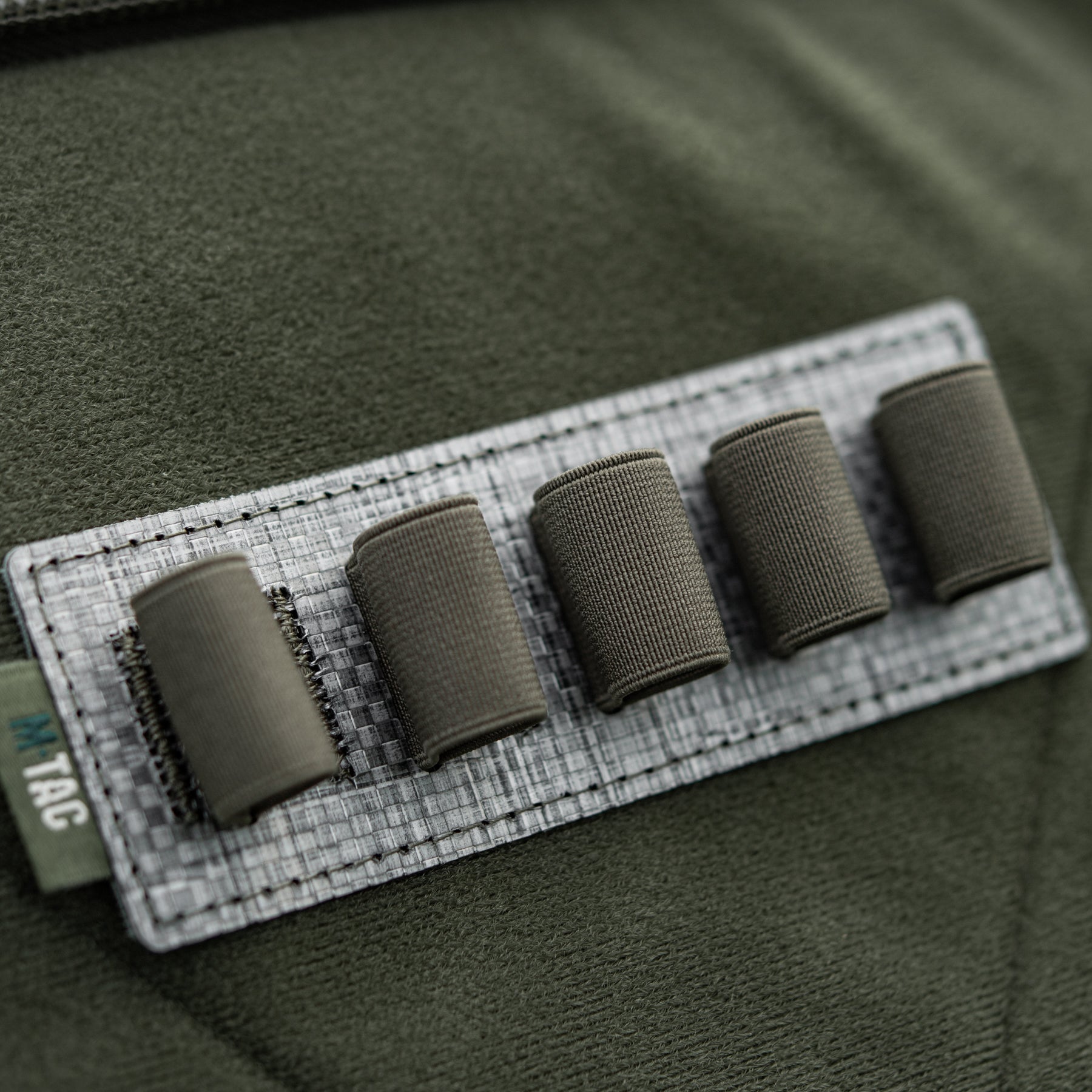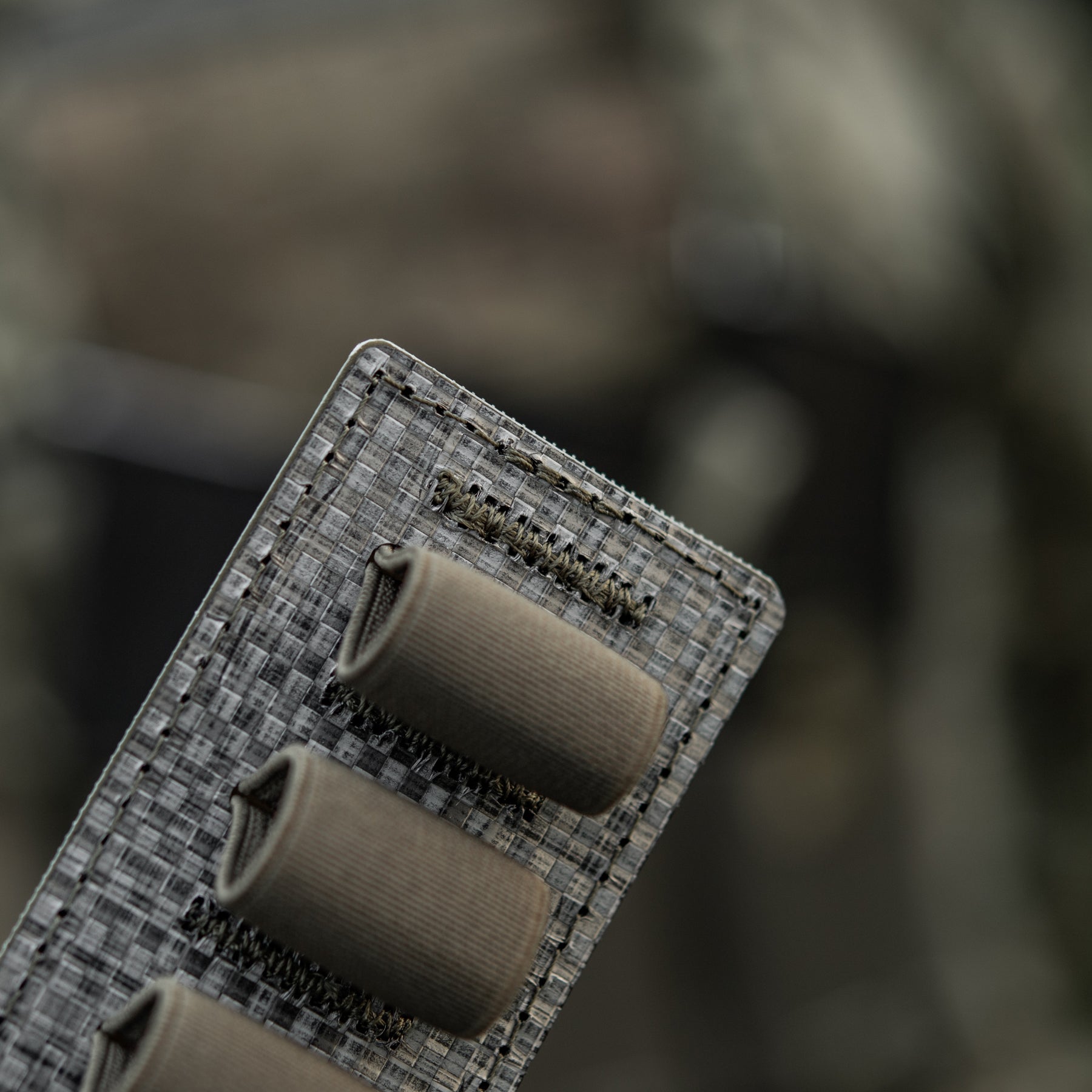 The back side of the insert is fully equipped with a hook panel, allowing you to easily adjust and secure its placement within your medical equipment according to your specific needs. The modular insert features five elastic retention bands that are sized to conveniently and securely hold 10 ml volume ampoules in place, preventing movement and damage during transport. This insert is an excellent solution for enhancing the functionality and organization of any tactical or medical pack.