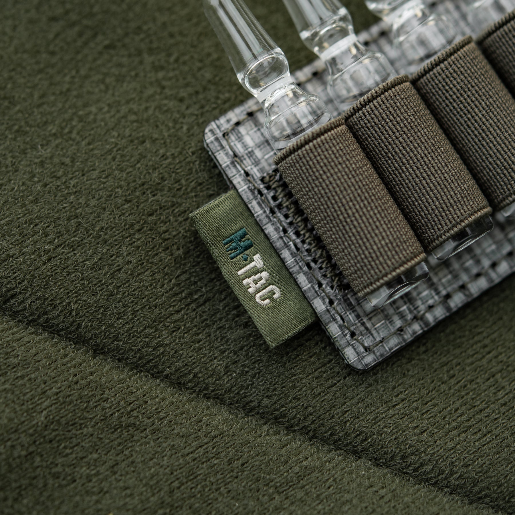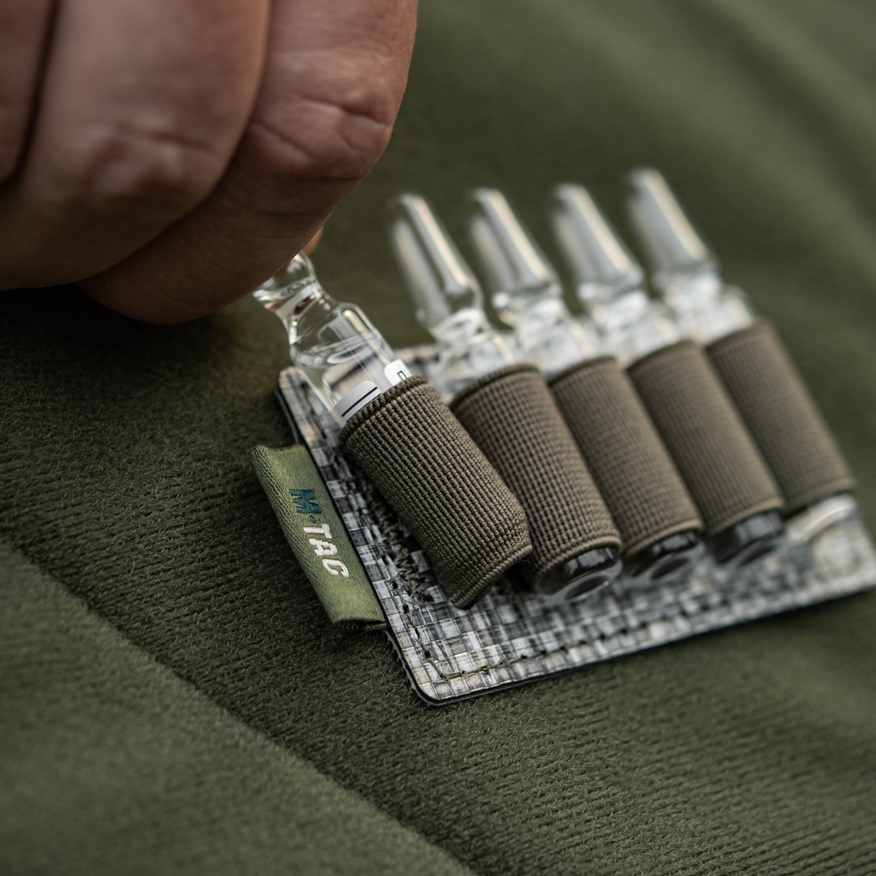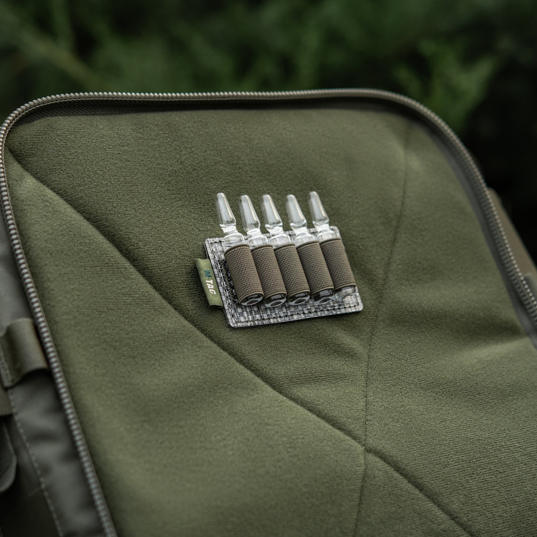 The back side of the insert is fully equipped with a hook panel, allowing you to easily adjust and secure its placement within your medical equipment according to your specific needs. The modular insert features five elastic retention bands that are sized to conveniently and securely hold 2 ml volume ampoules in place, preventing movement and damage during transport. This insert is an excellent solution for enhancing the functionality and organization of any tactical or medical pack.