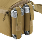 On the front panel, there is a dedicated shears holder, secured with webbing and a buckle. Each side of the bag includes four integrated tourniquet pouches, while elastic webbing inside ensures both reliable fixation and quick access to contents. The top flap integrates a pouch for medical gloves (optimized for up to 5 pairs). Front and rear compartments are designed to hold immobilization splints.