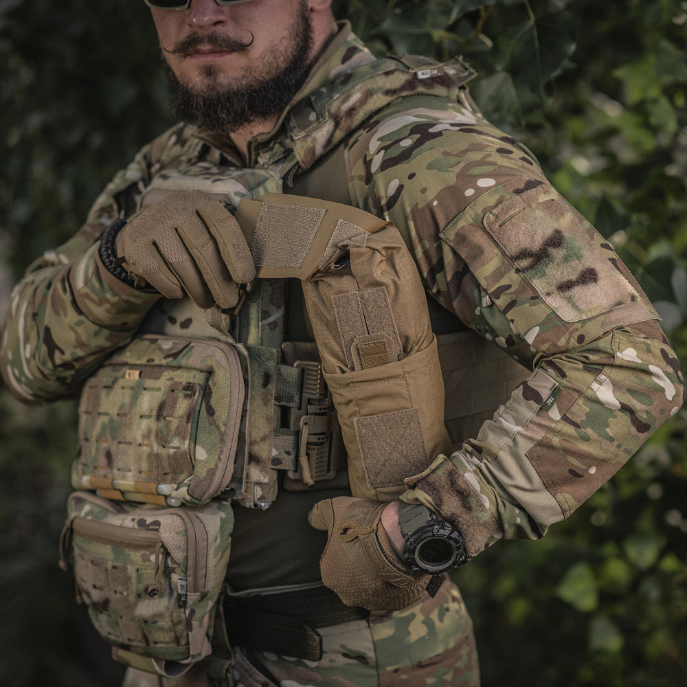 The outer med pouch is made of Cordura 500D—a durable material resistant to abrasion and heavy loads. The inner side walls are reinforced with nylon webbing, which helps the small medical pouch retain its shape. An additional securing element is the compression strap that ensures reliable retention of the med kit, even during intense movement. The pouch attaches to gear via a Laser Cut MOLLE interface.