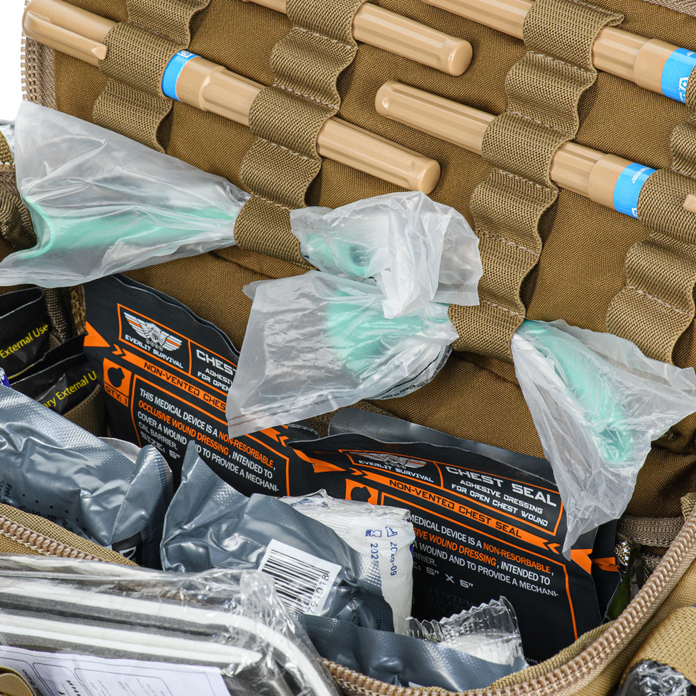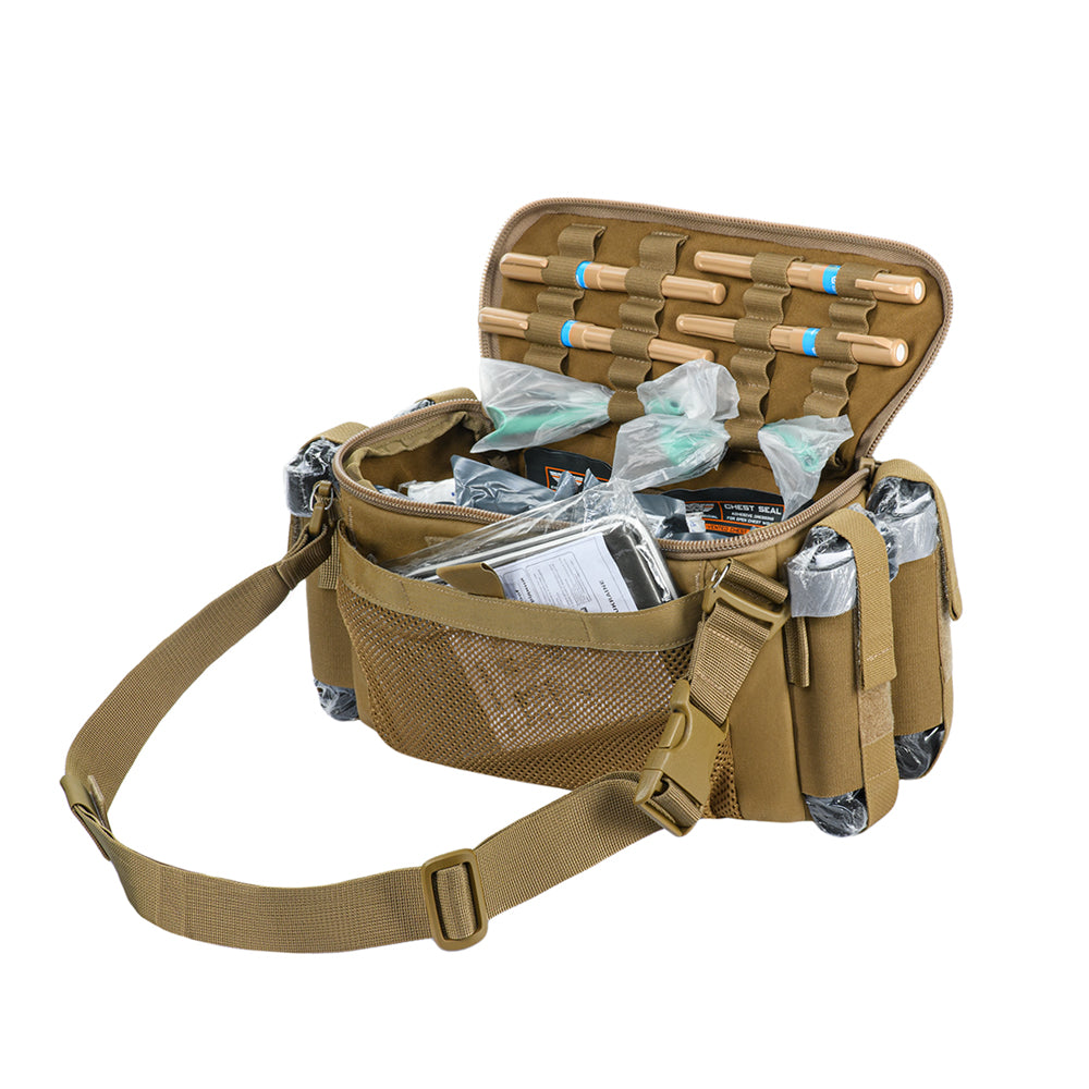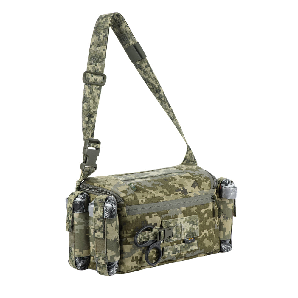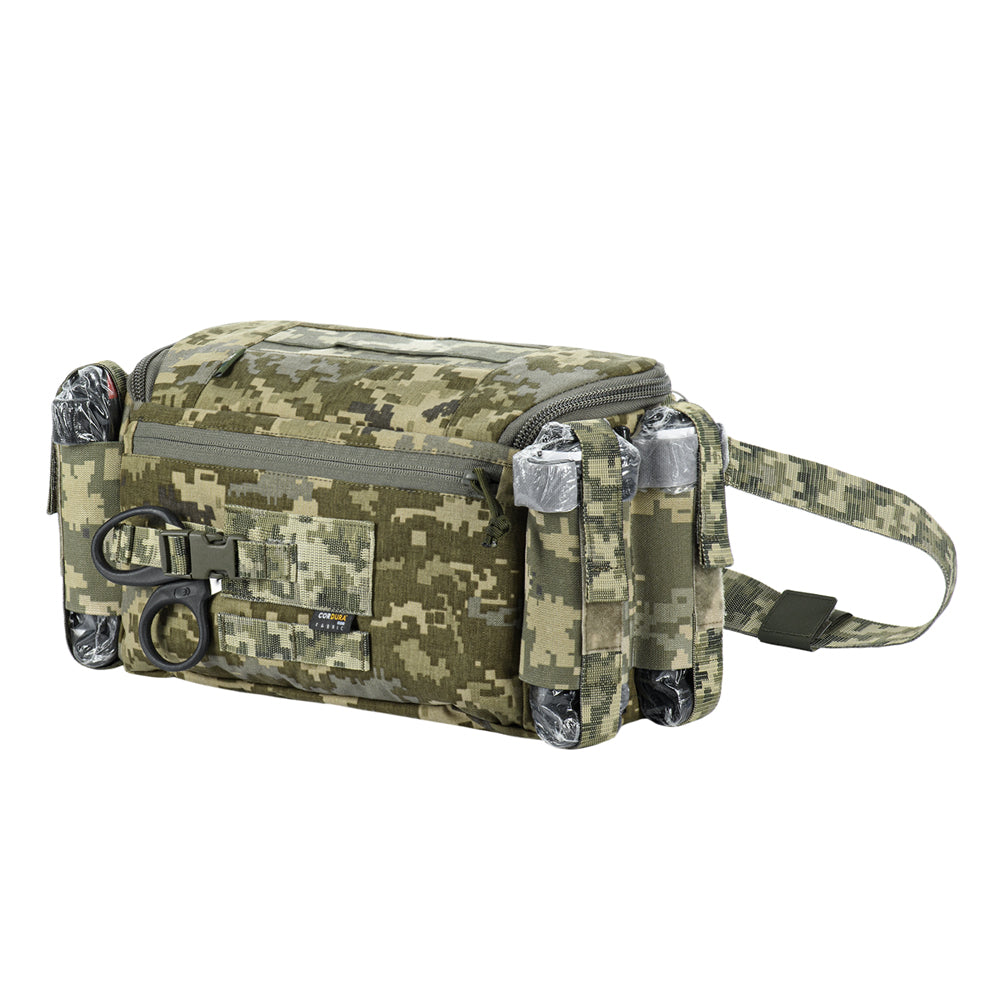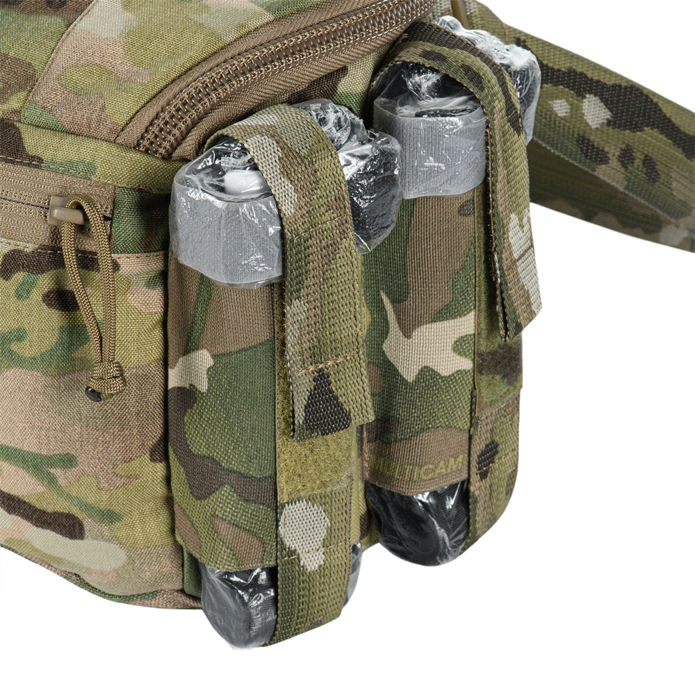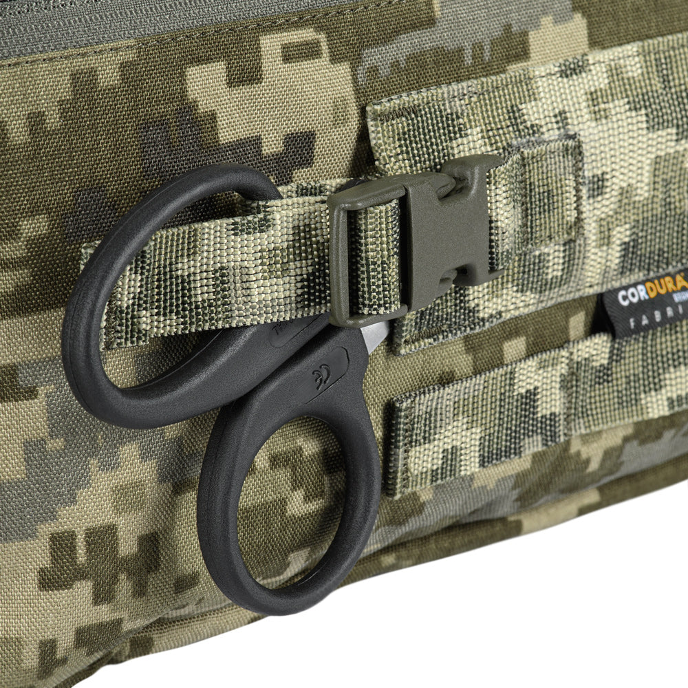Constructed from 500D Cordura®, the bag provides excellent durability and resistance to mechanical damage. The integrated pouches’ straps, carry strap, shears holder, and stretcher webbing are made of Mil-Spec webbing (Original MultiCam®). Buckles and zippers come from world-leading manufacturers WOOJIN and YKK, ensuring long-lasting performance and reliability.