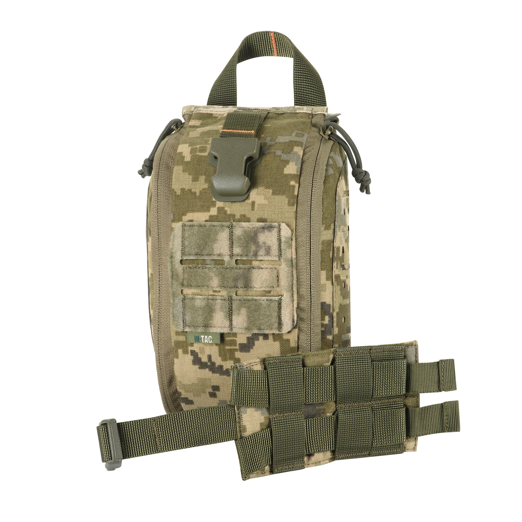 The M-Tac Elite Rip Off medical pouch can be opened with a flick of the wrist in case of an emergency. Granting access to everything that's inside and preventing the gear and medicine from falling out. Instant access to your first aid kit. Bandages, bandaids, gloves, etc. can be attached to the cover with an elastic band. The sides of this tactical med pouch feature cut-out panels for additional equipment to be attached. Made out of polyethene elastomer, they are abrasion-resistant and withstanding of extreme temperatures. An accessory that can't be overlooked. It can be strapped to your belt, a MOLLE interface on a vest, or packed into your car.