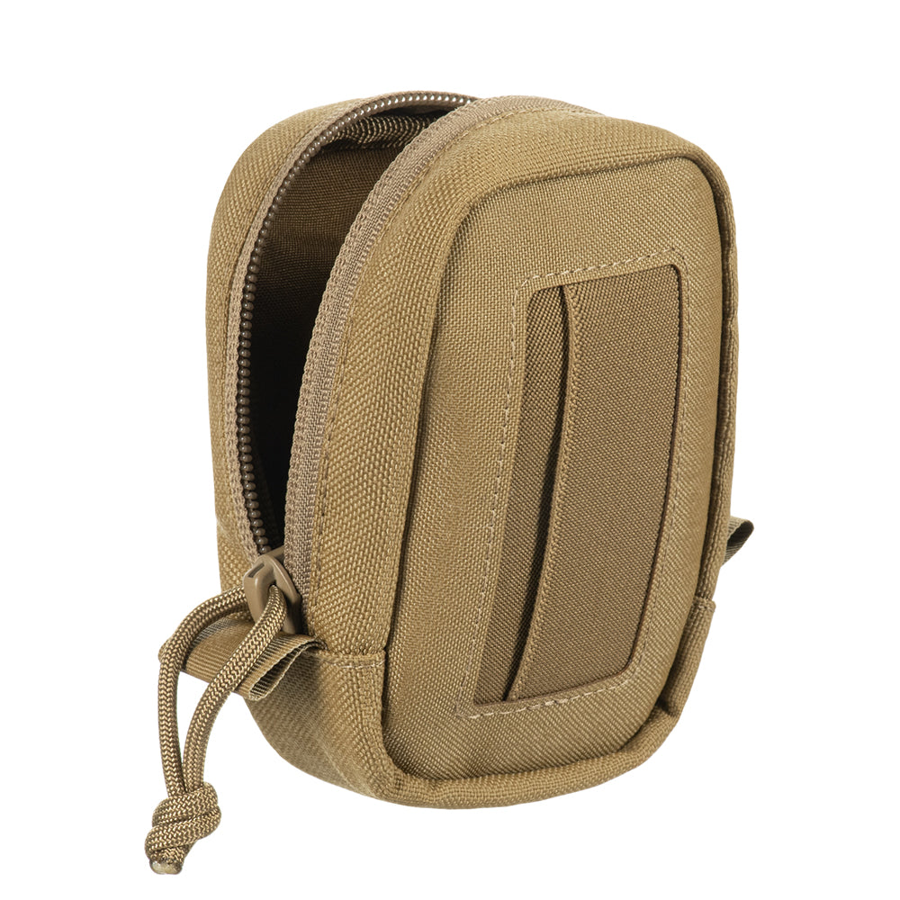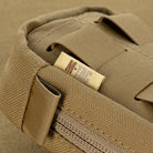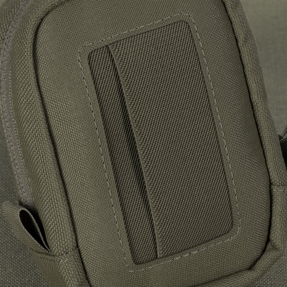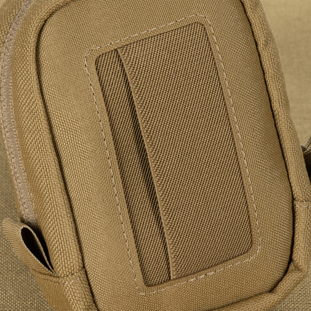 The pouch is designed for secure storage and transport of medical gloves (optimal capacity – 10 pairs). Made from Cordura 1000D, a high-quality, wear-resistant material, it provides protection against mechanical damage and ensures long-term use. The front panel is made from Cordura Squadron and features nylon elastic bands that securely hold the contents while allowing quick access. The back panel is also made from Cordura Squadron and features a MOLLE Laser Cut system. This system is lighter than standard MOLLE, helping reduce the overall weight of the pouch by approximately 35%.