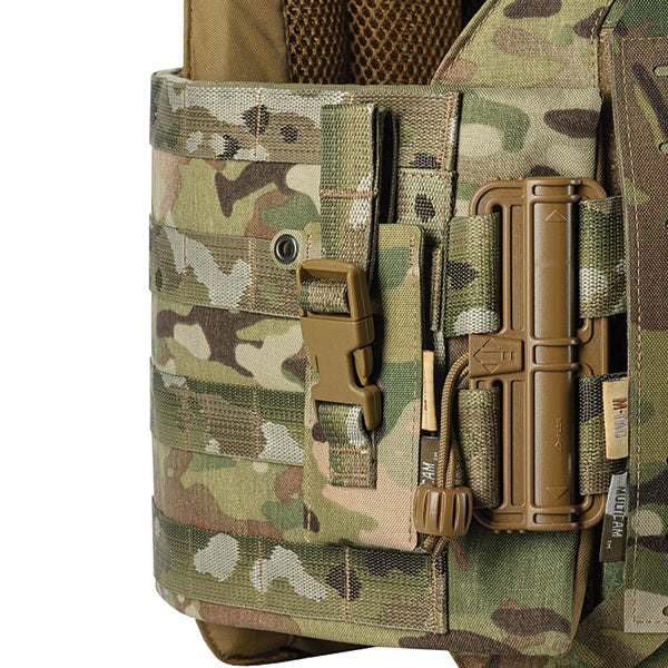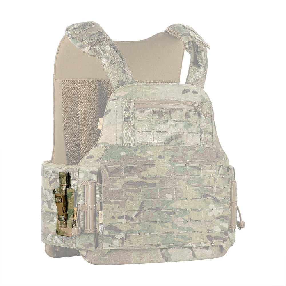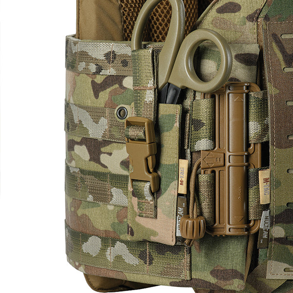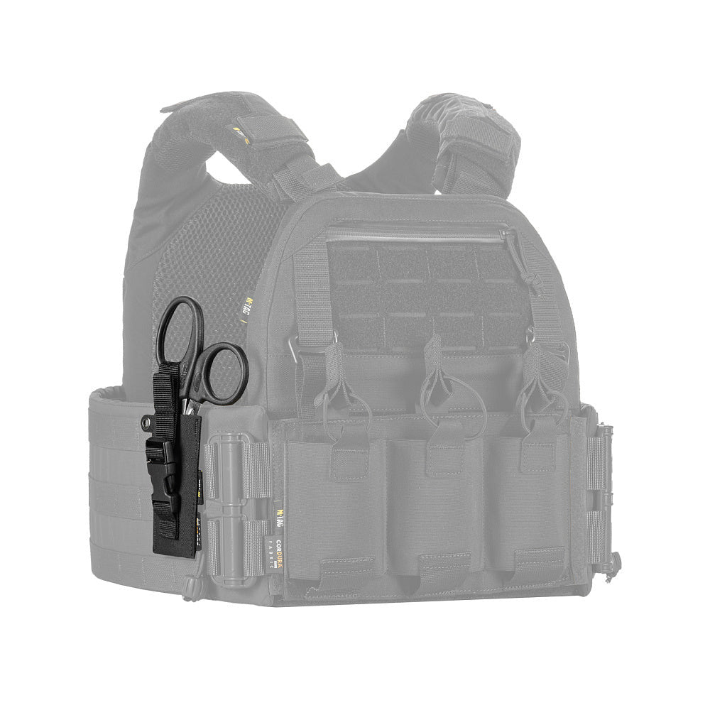This pouch is designed for the convenient and secure carry of medical shears on a plate carrier, body armor, or other gear. It mounts using an extended strap that weaves through the slits on the pouch’s back and the MOLLE system on your equipment.