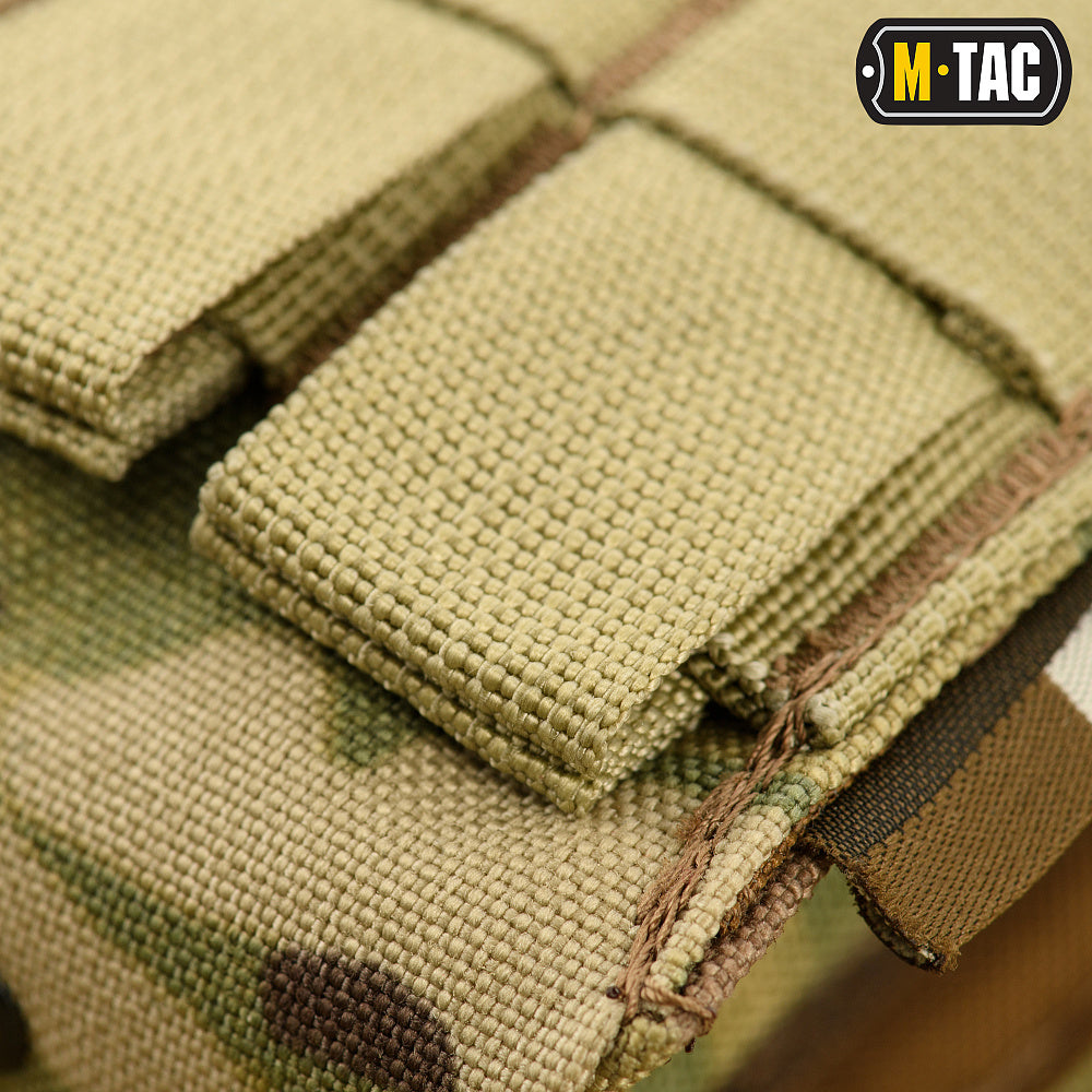 The M-Tac quick-release fragmentation grenade pouch is designed for secure and convenient carrying of F1, RGD-5 grenades, or other similarly sized equipment. Grenades can be placed either with the fuze installed or without it. The pouch is closed with a wide hook-and-loop flap, ensuring reliable retention and fast access when needed.