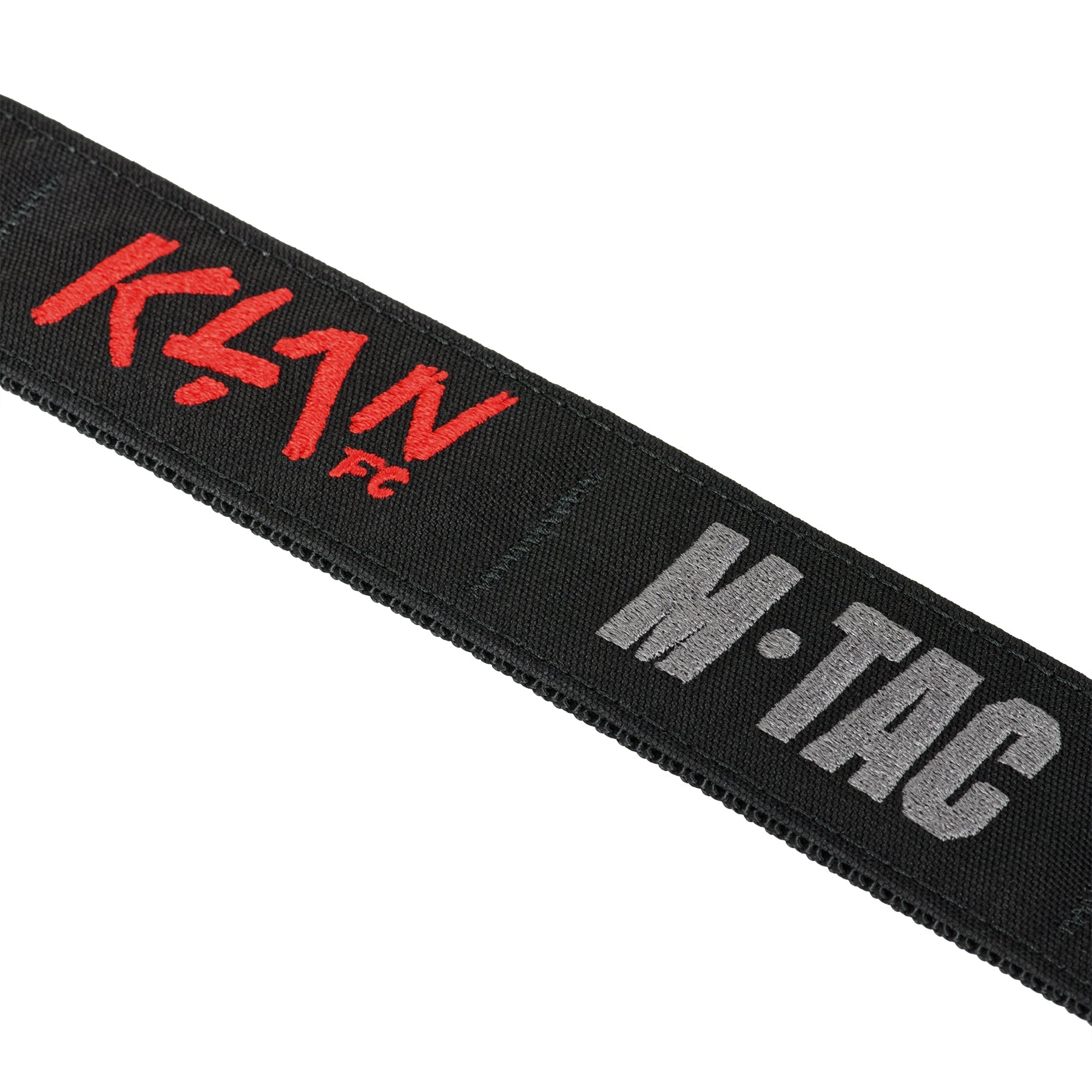 The belt size is easily adjustable via a nylon strap with a sewn-in hook-and-loop section. The outer side features embroidered logos of both M-Tac and KLAN FC.