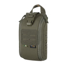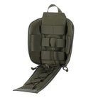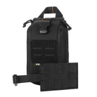 The pouch features a single compartment with an ultra-reliable dual YKK® zipper, which opens in a suitcase-style layout, granting full access to the interior. Inside, there's a well-organized layout made of elastic loops for securing medical supplies. A Velcro tab with a pull strap simplifies opening the pouch, while an additional quick-release strap with a buckle allows for fast detachment in emergency situations. A sturdy handle ensures comfortable hand carrying.